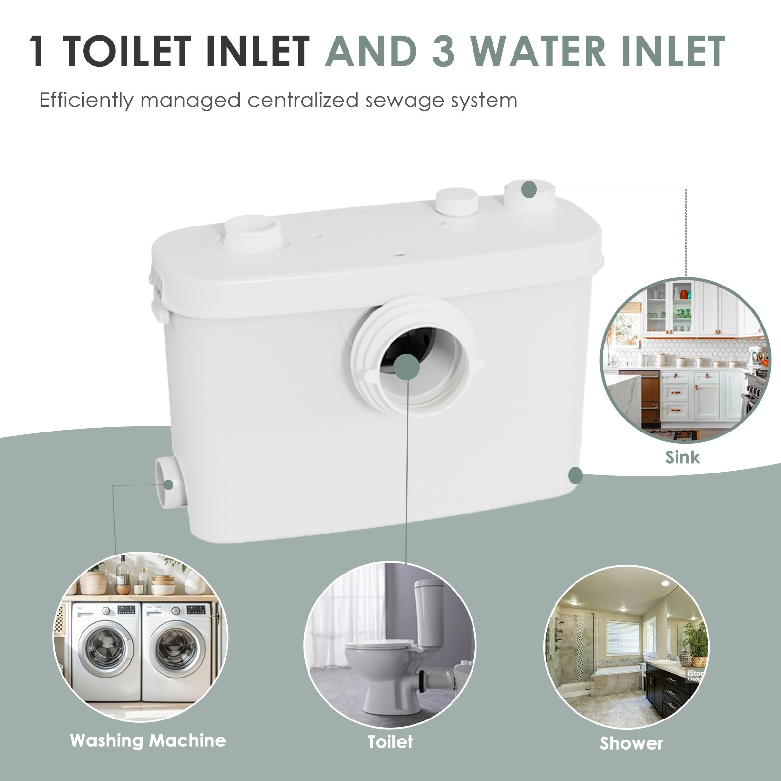 500W Upflush Macerating Toilet System with Upflush Pump 4 Inlets for Basement