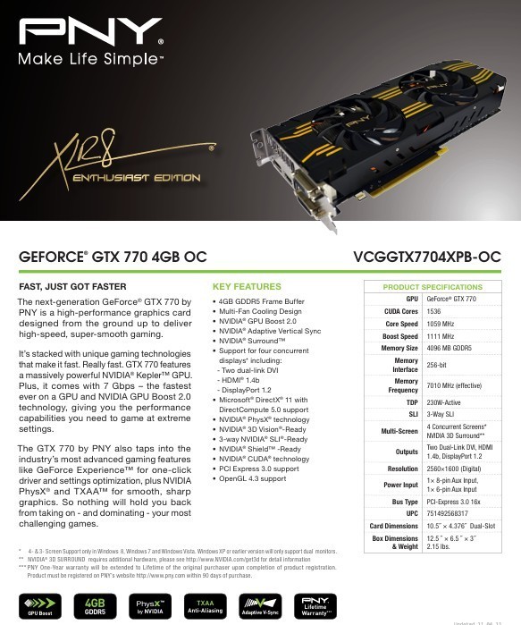 PNY GeForce GTX 770 OC 4GB GDDR5 PCIe 3.0 Graphics Card