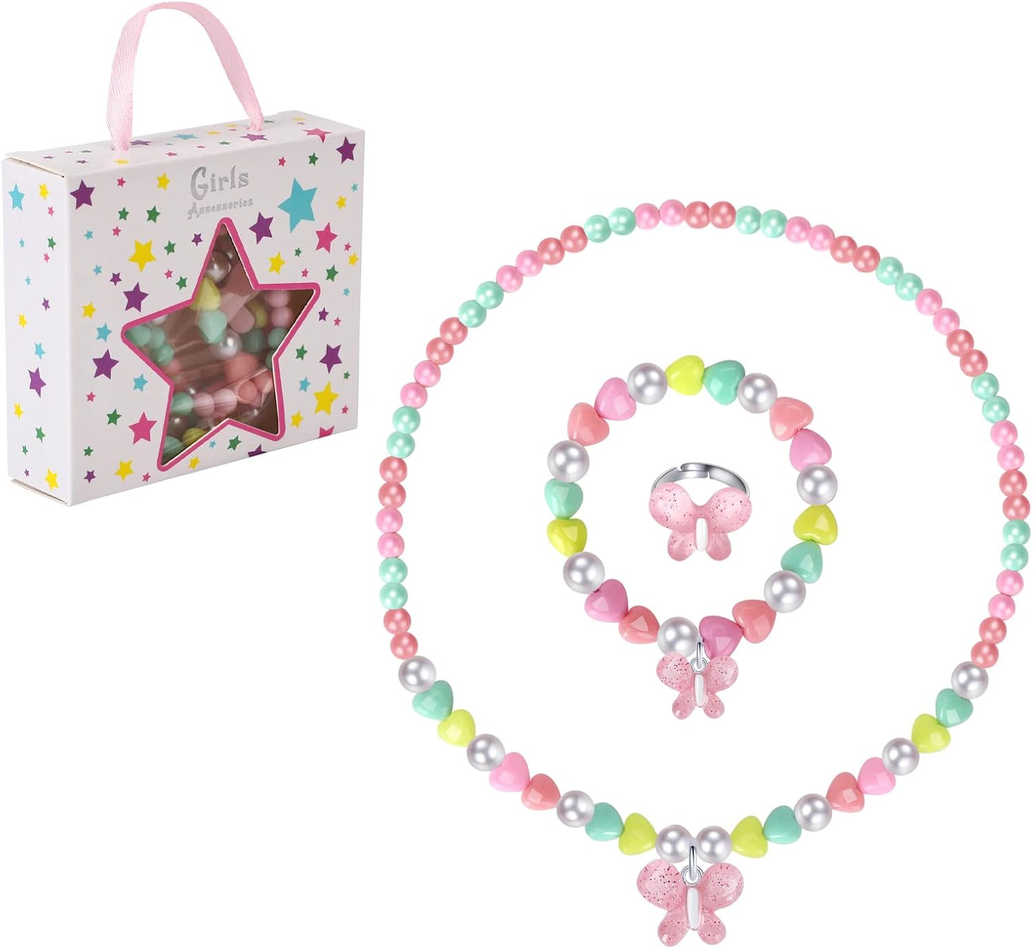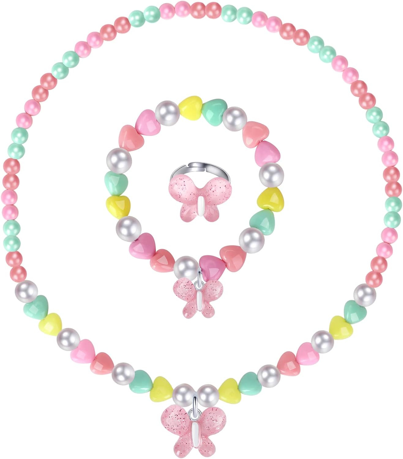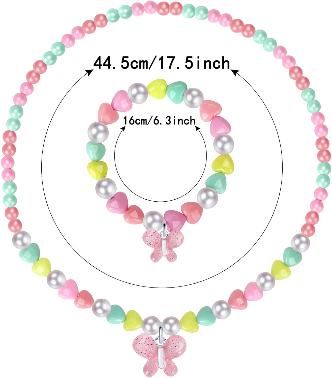 Girls Glitter Butterfly Jewelry Set - Toddler Butterfly Necklace Girls Pretend P