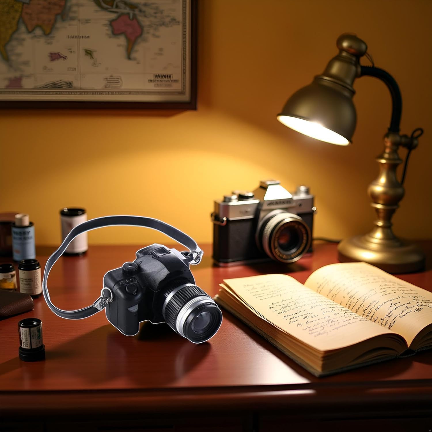 2Pcs 1:4 Scale Mini Camera Prop Ornament Vintage Camera Model, Miniature Digital
