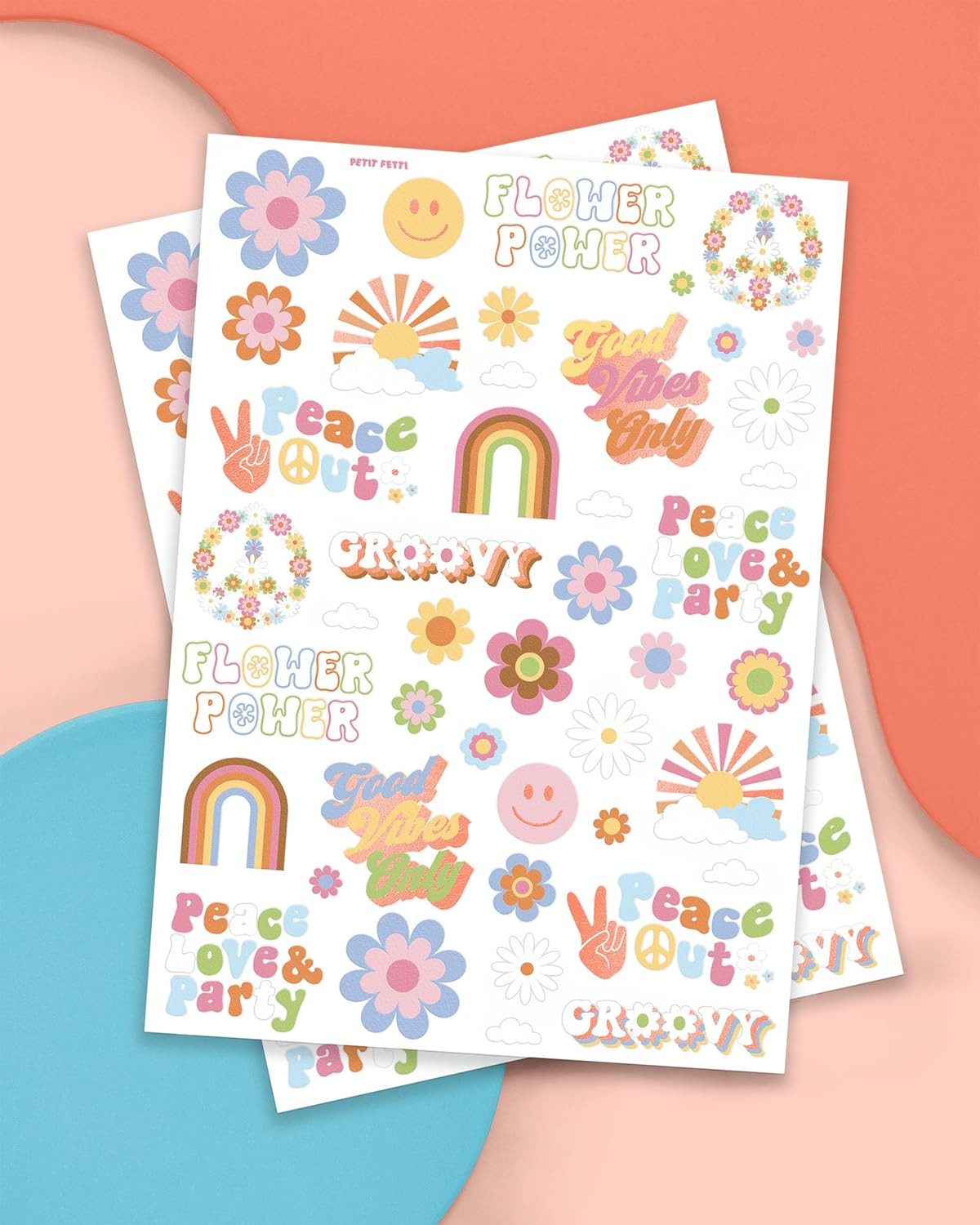 Groovy 70S Temporary Tattoos - 48 Glitter Styles Flower Power Birthday Party S
