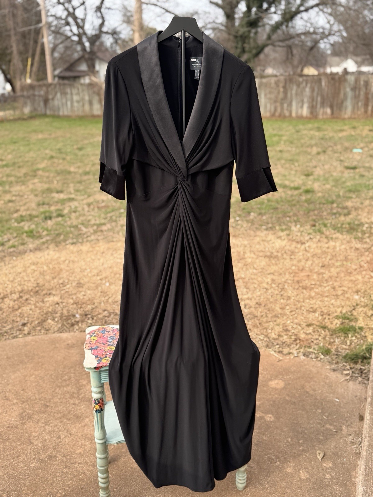 Adrianna Papell Black Full Length Formal Evening Gown Sz 12 Wm Timeless Classy