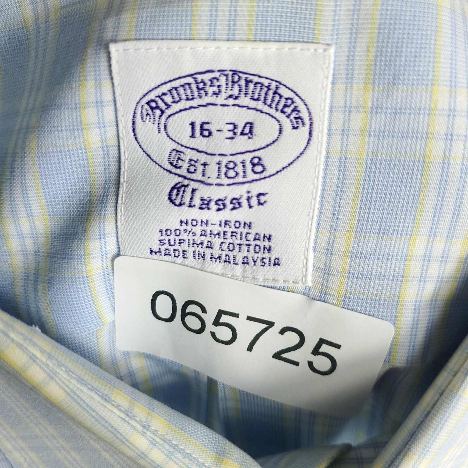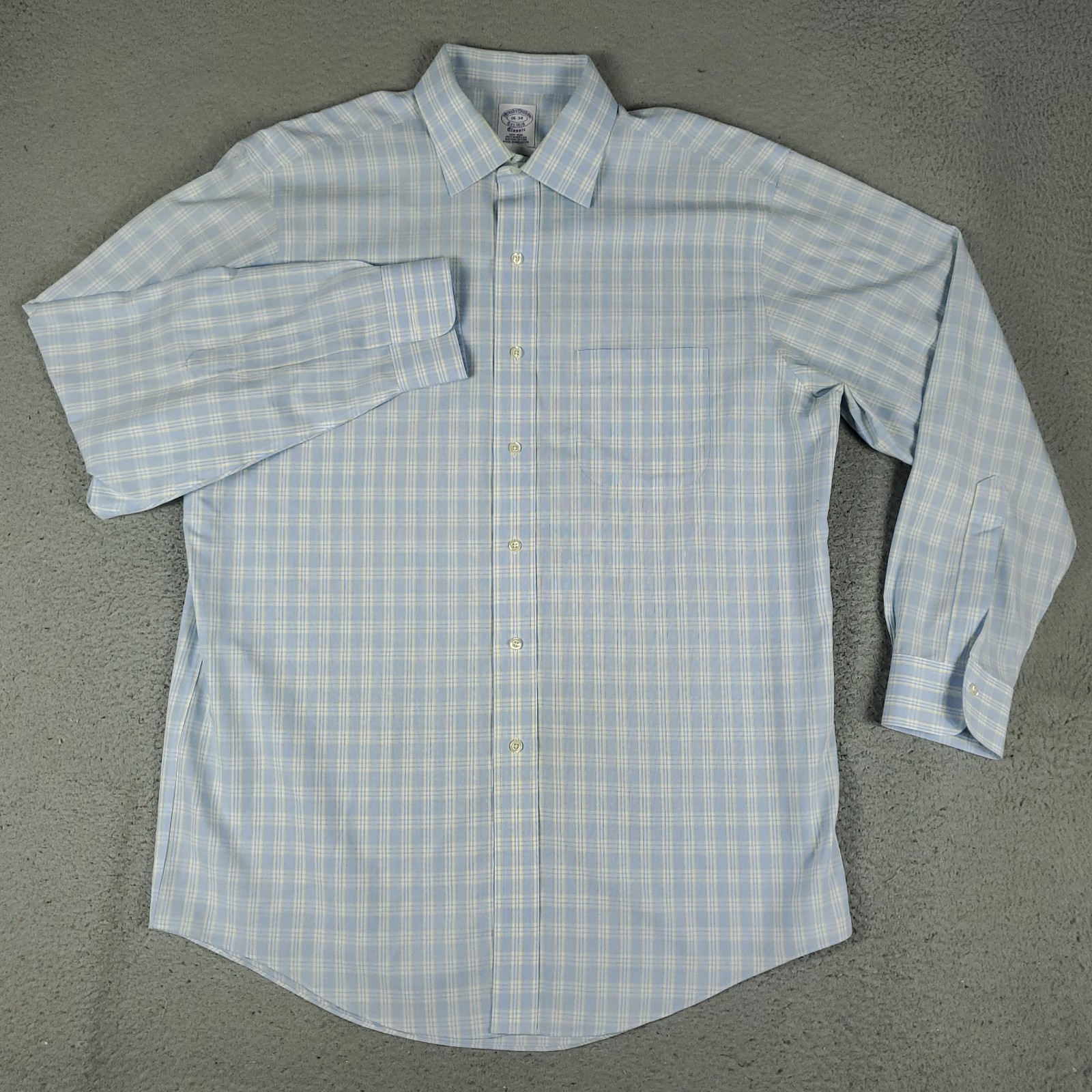 Brooks Brothers Shirt Mens 16 Blue Plaid Dress Button Up Long Sleeve