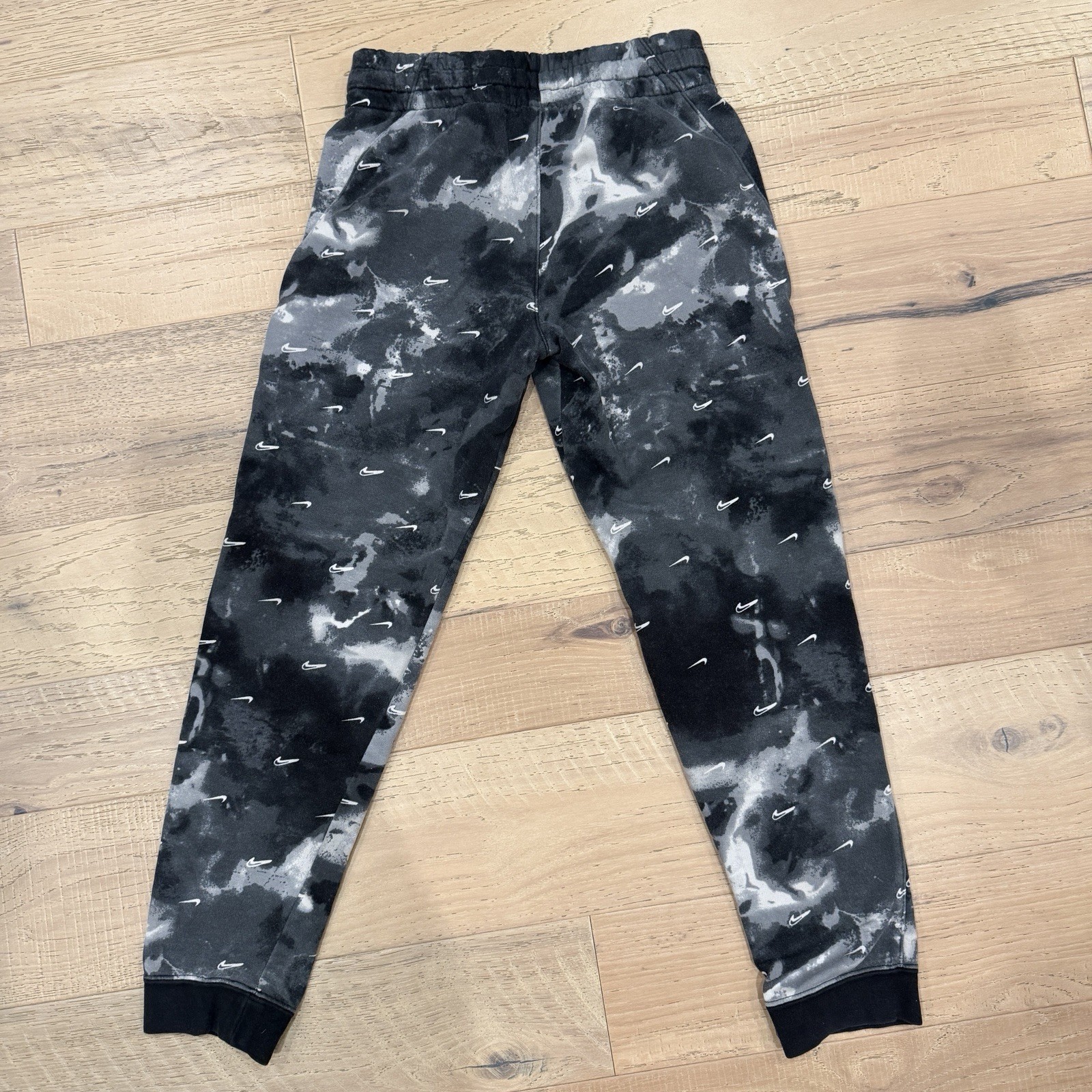 Nike Youth Medium Hoodie Joggers Set Black Grey Tie-Dye All Over Swoosh Fleece