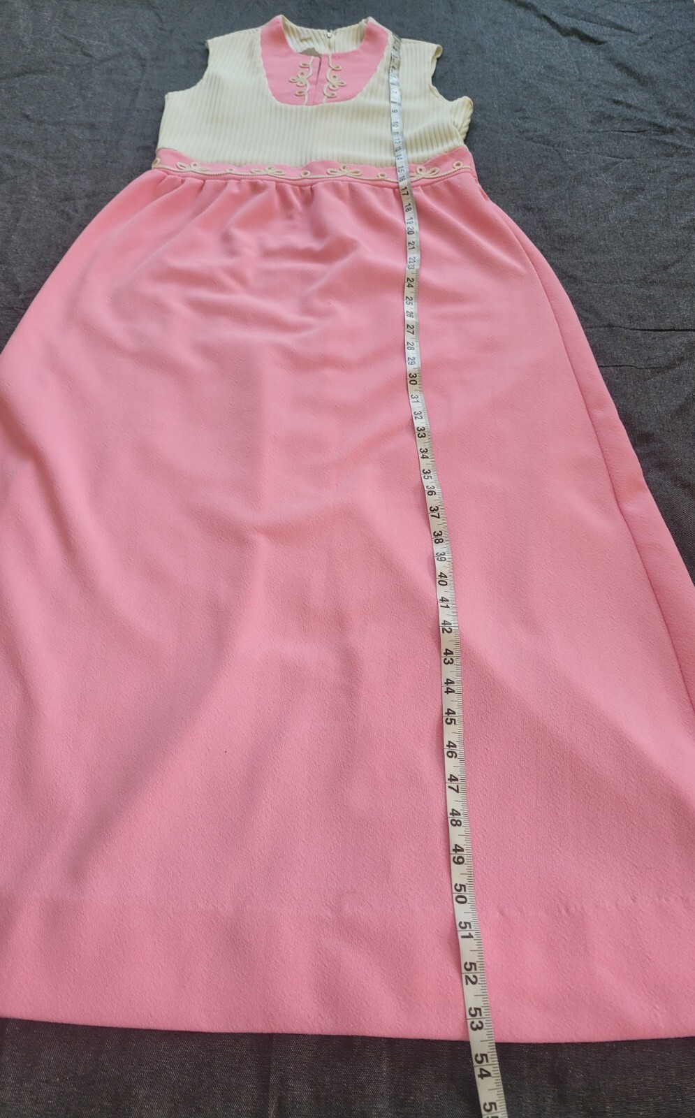 Vintage 60s 70s Pink White Maxi Dress Mod Hippy Retro Knit Details Size S/M