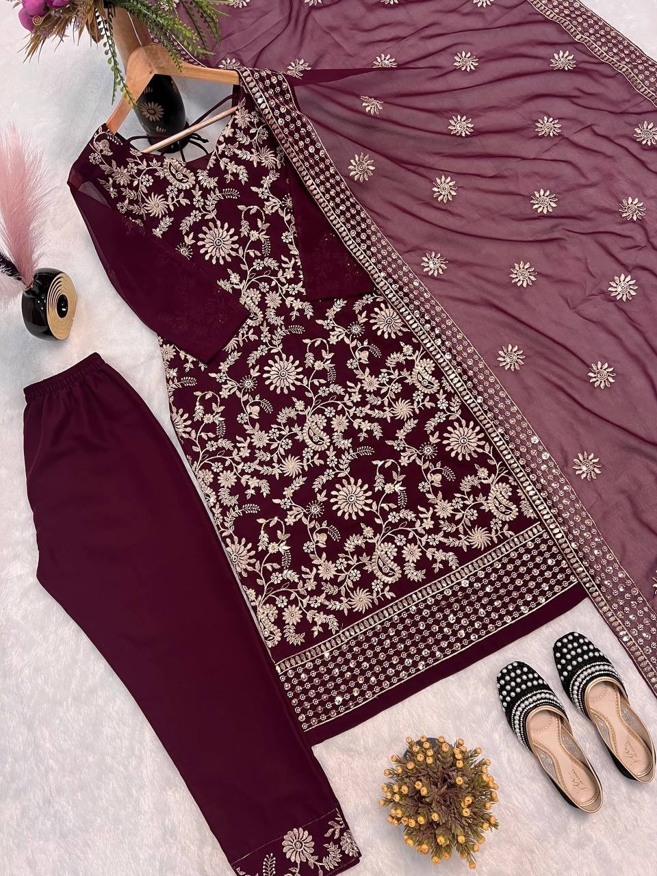 как выглядит New Faux Georgette Wine Salwar Kameez With Dupatta For Function Party Wear фото