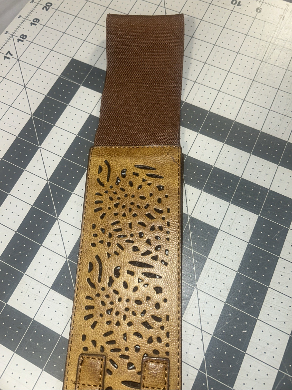 Woven Stretch Waist Belt Womens One Size Brown Wide Double Buckle Leather