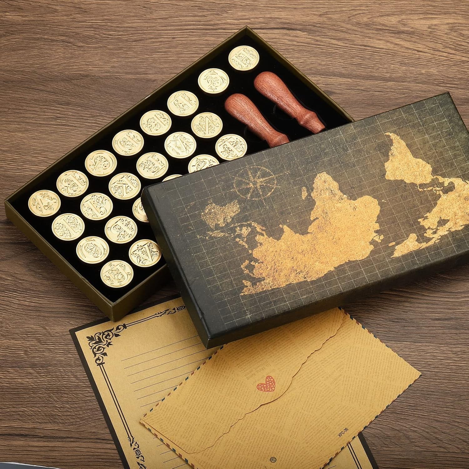 Alphabet Wax Seal Stamp Kit, 26 Letters A-Z Sealing Wax Stamp with 2pcs Woode...