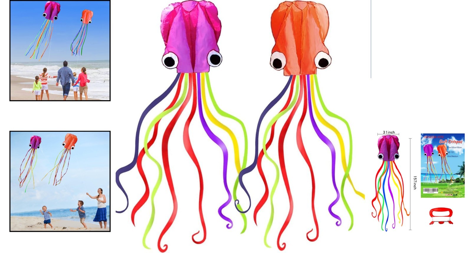 Beautiful Soft Octopus Kites with Colorful Tails - 157 Inch, Perfect Family Fun