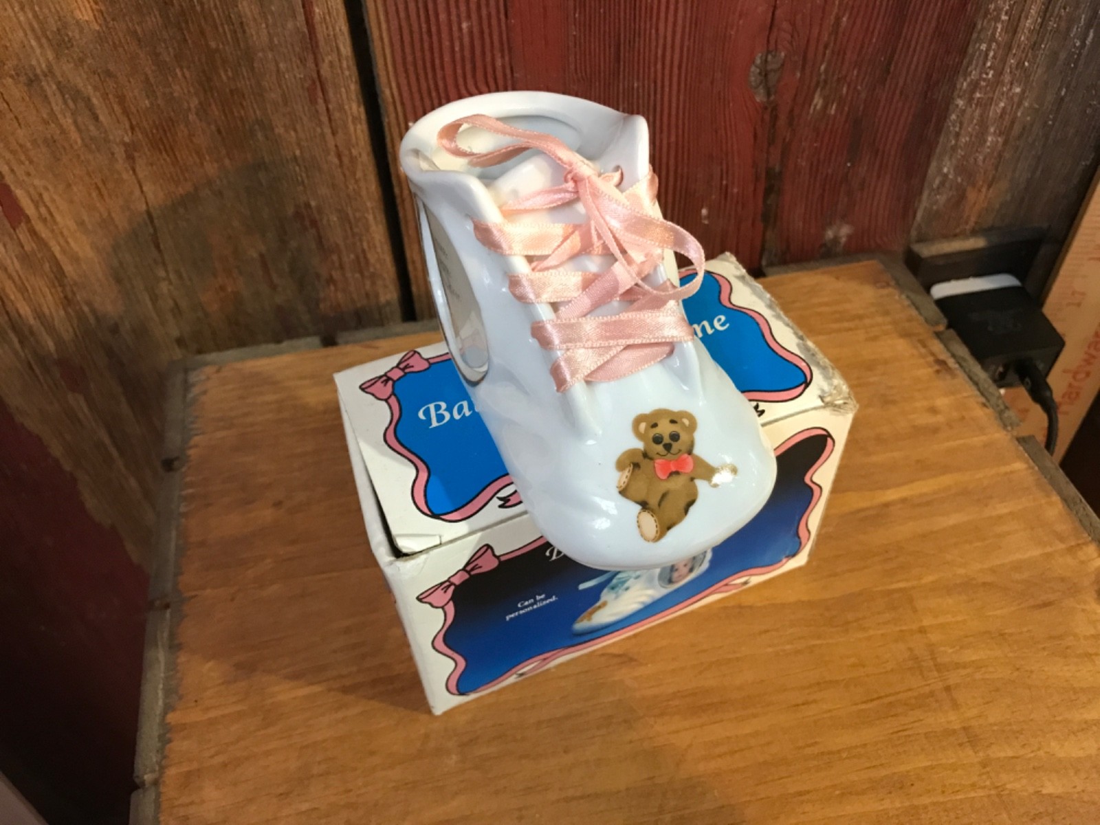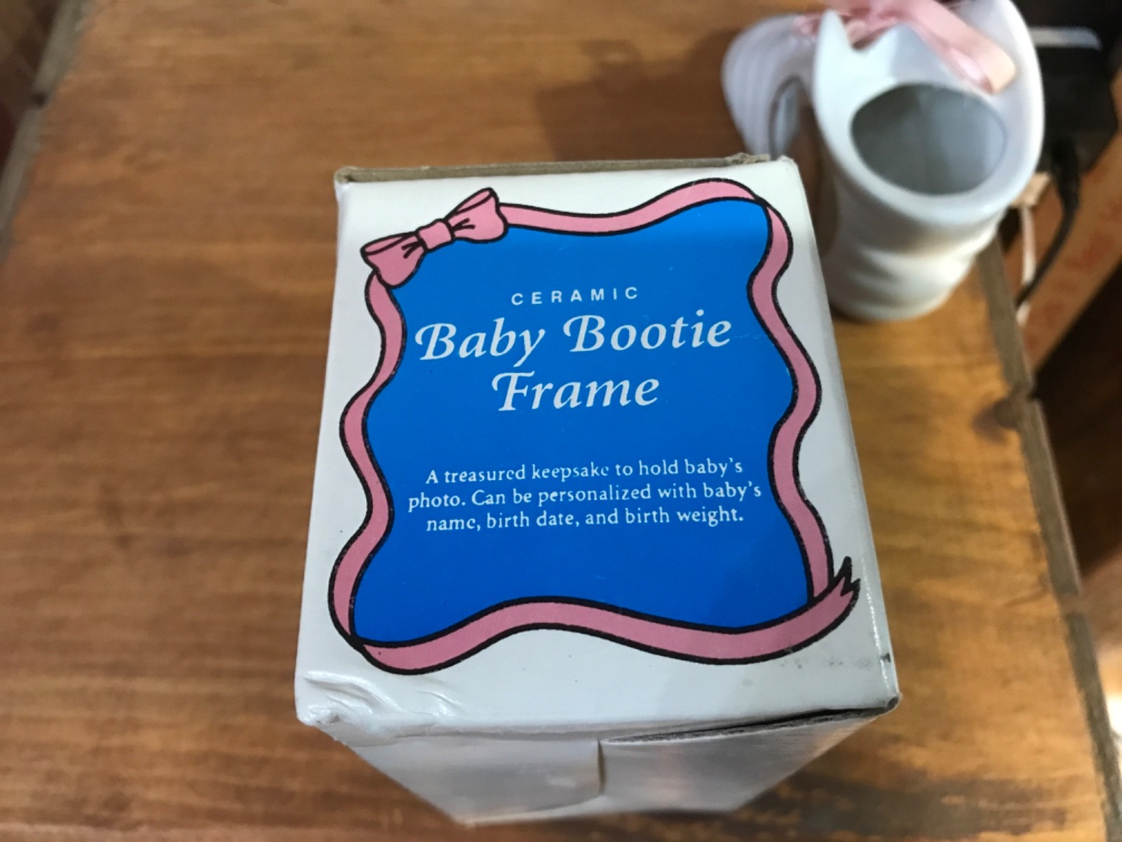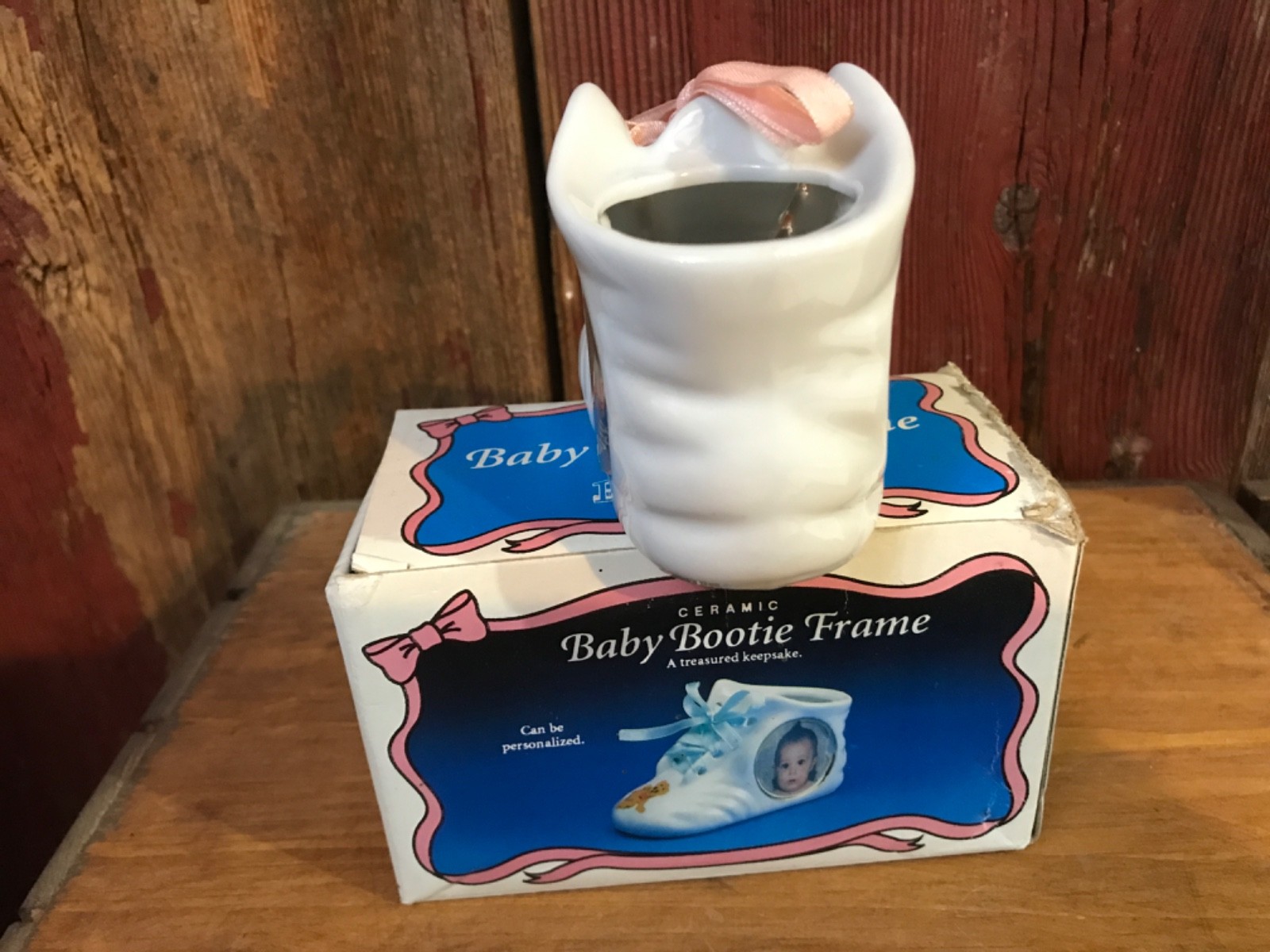 как выглядит Vtg Ceramic Baby Bootie Picture Frame w/original box Taiwan.........z7 фото