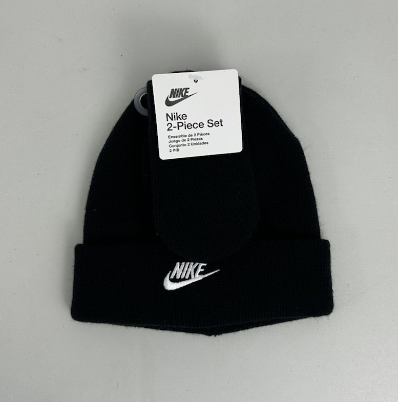 Baby 2 Piece Set Nike Futura Beanie and Mittens Set Black 12-24 Months NWT