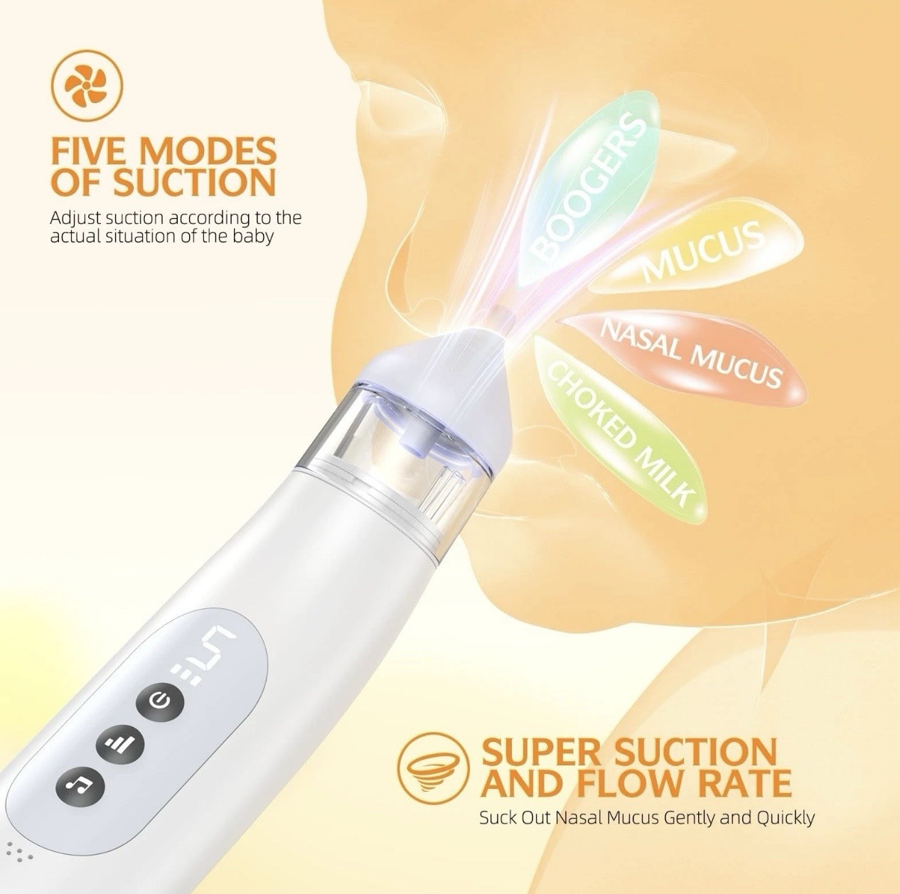 Nasal Aspirator for Baby 5 Suction Levels Rechargeale Nose Sucker, Music and ...