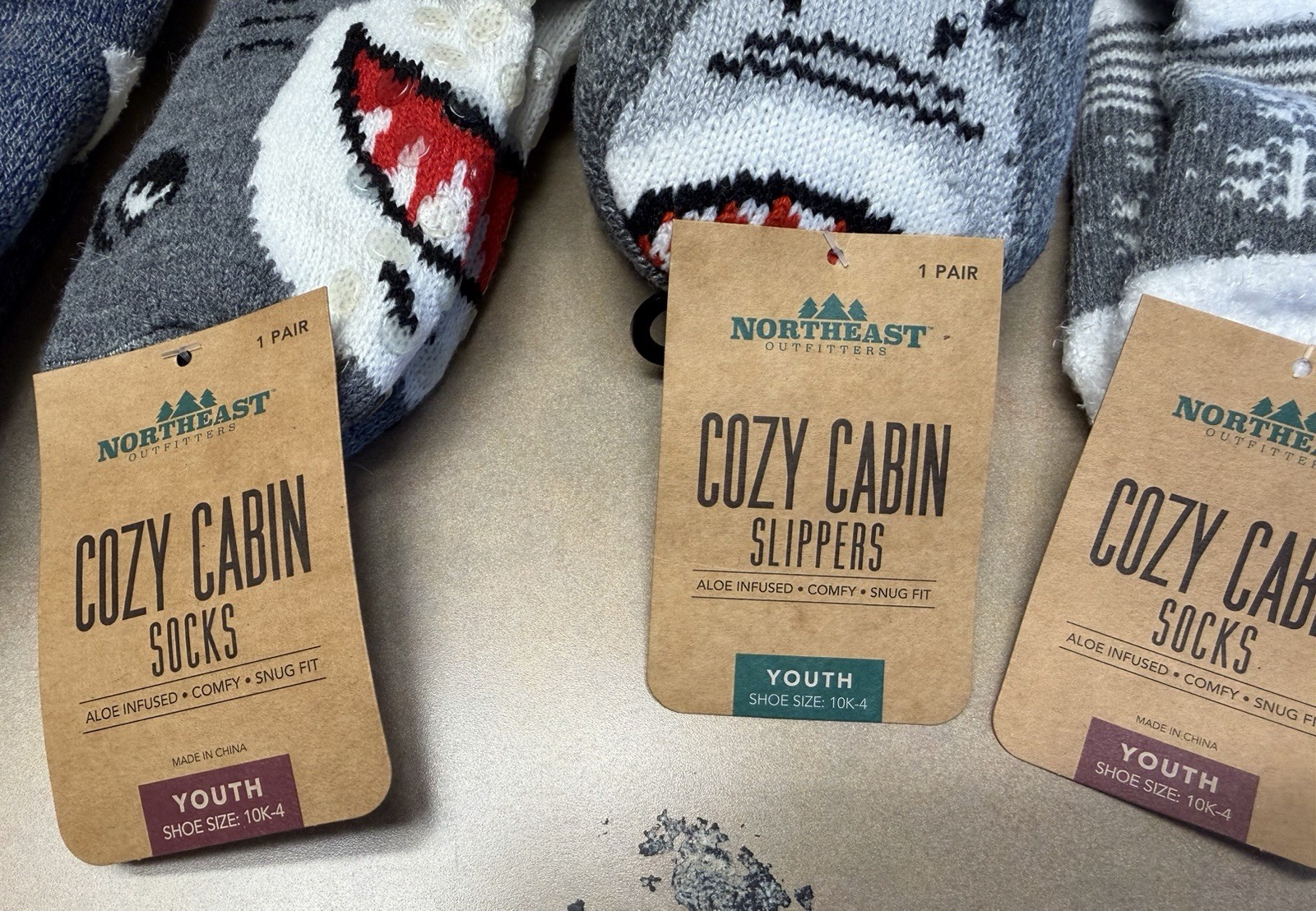Cozy Cabin Youth Socks/Slippers- 4 Pack- NWT