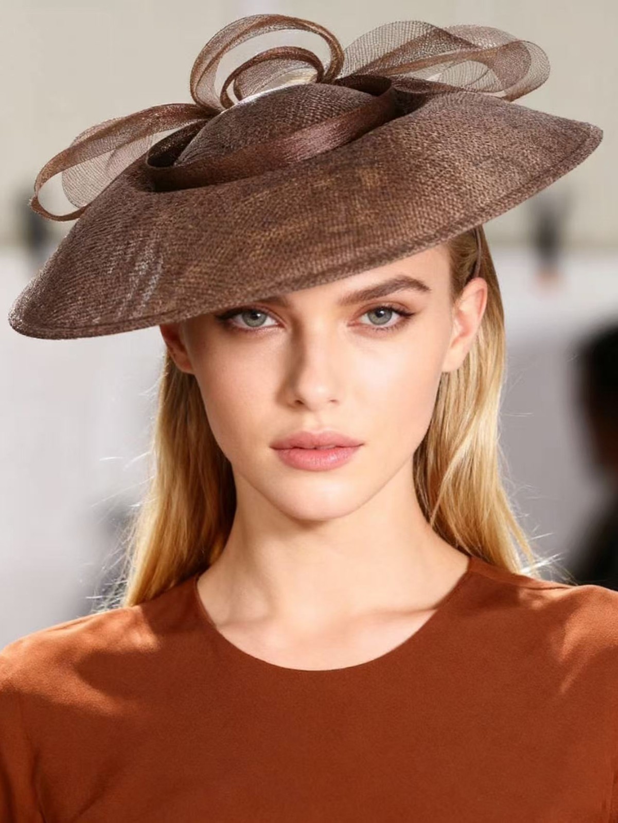 Brown Formal Church Kentucky Fascinator Hat for Women,Tea Party Hats with Mesh