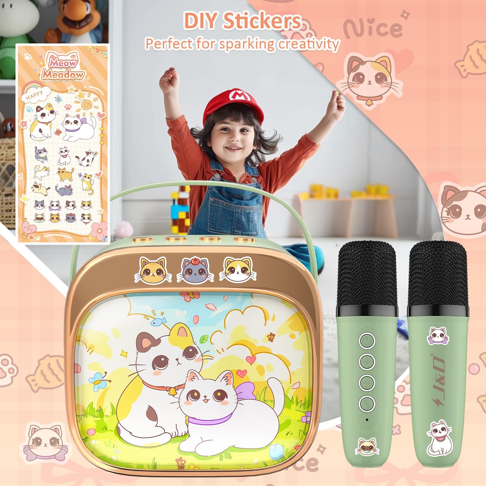 Mini Karaoke Machine for Kids Adults, Portable Bluetooth Speaker with 2 Wirel...