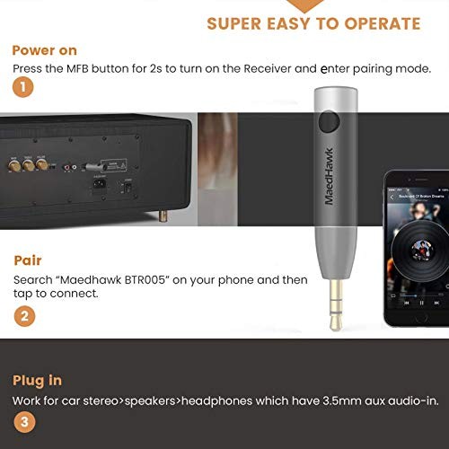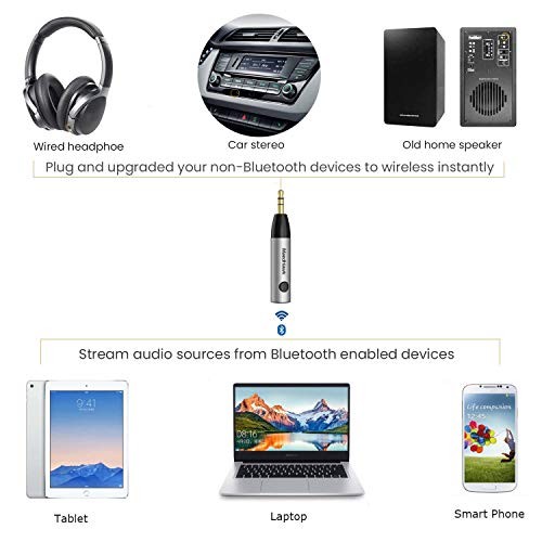 Bluetooth 5.0 Receiver, Bluetooth Aux Adapter / Portable Wireless Audio Silver