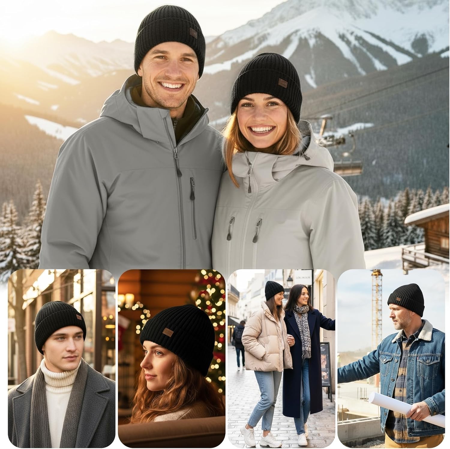 как выглядит Merino Wool Beanie Hat for Men Women - Thermal Knitted Winter Hat for Large Head фото
