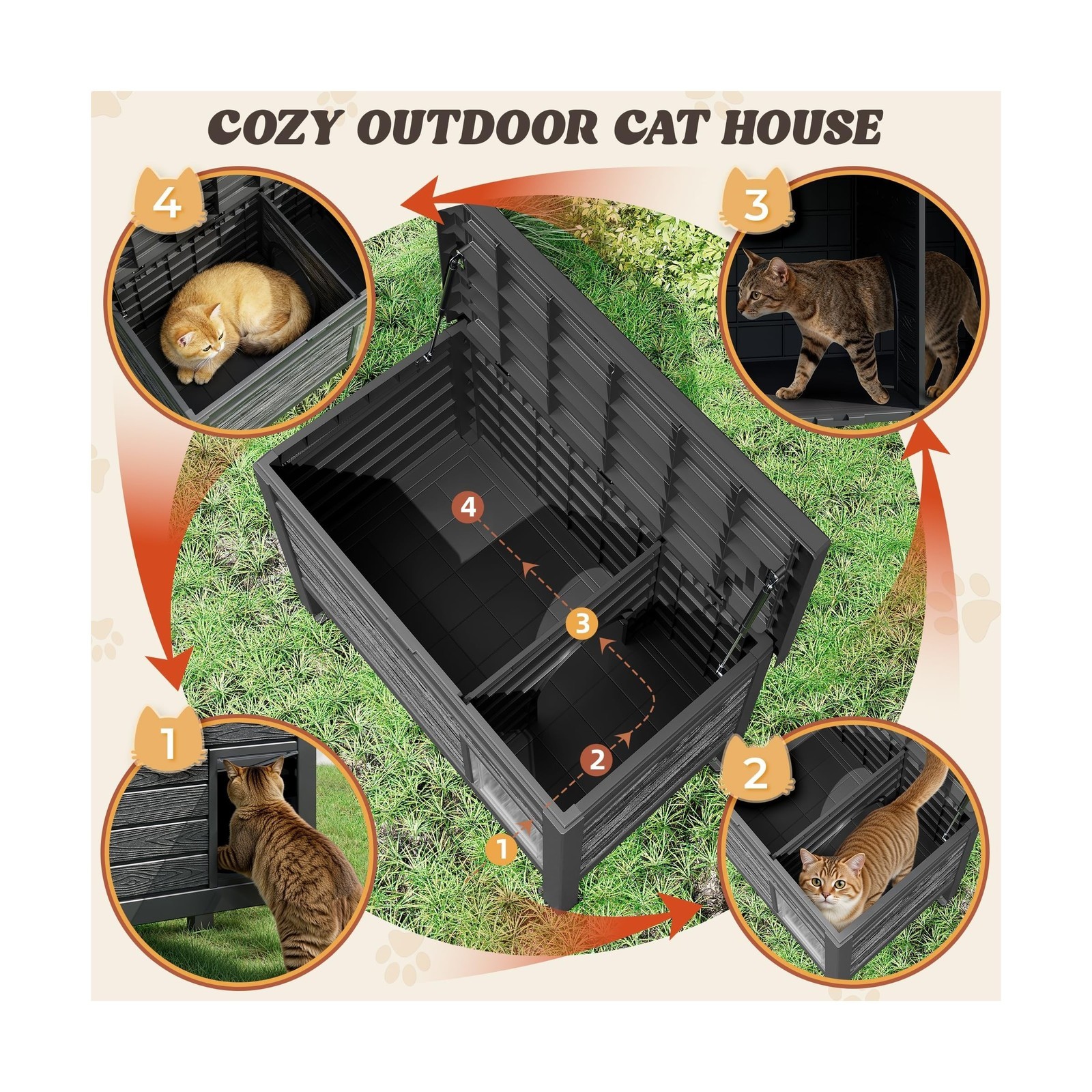 LHBcraft Outdoor Cat House Weatherproof, Insulated Cat Houses for Outdoor Ind...