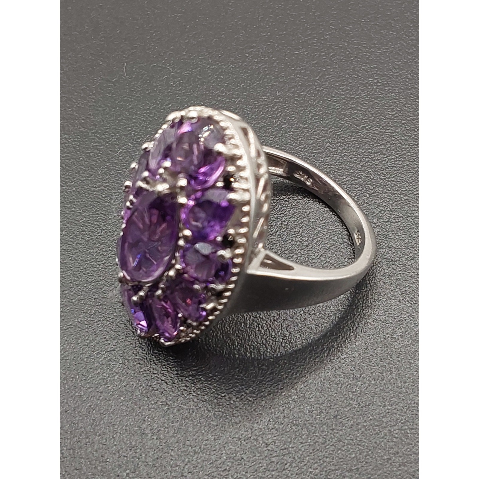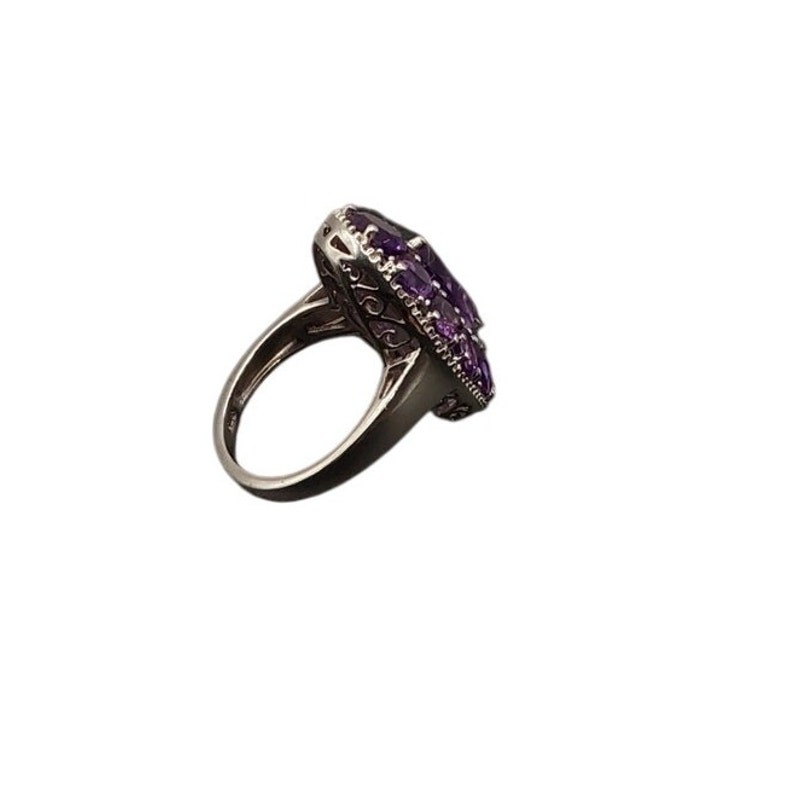 как выглядит 925 Sterling Silver Vintage Oval Amethyst Cluster Ring Size 8 фото