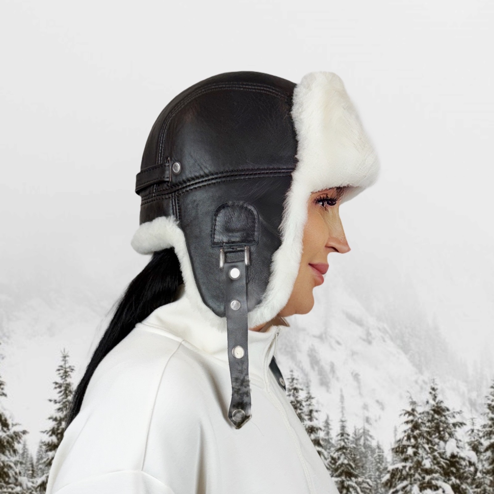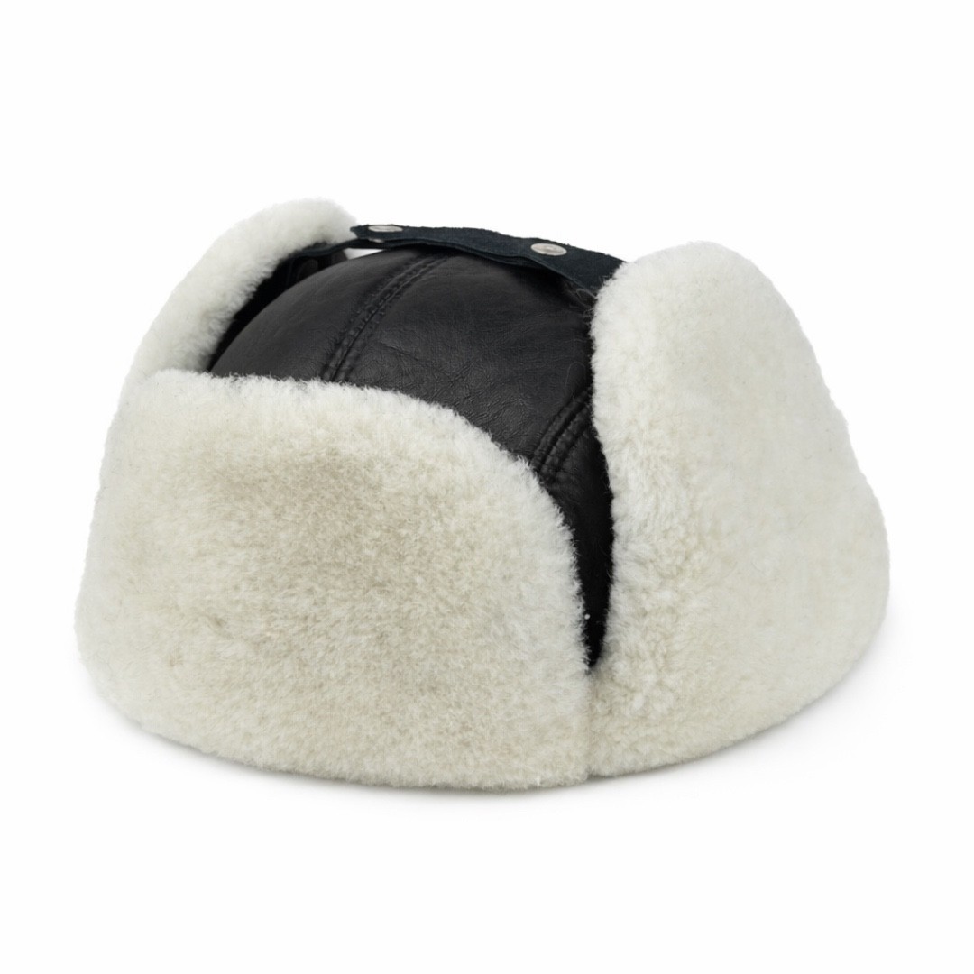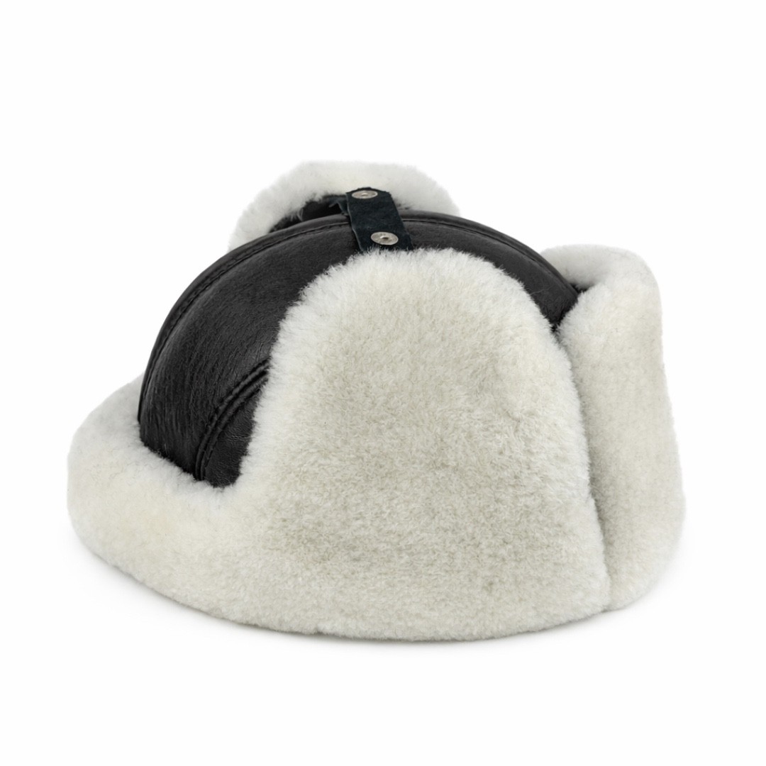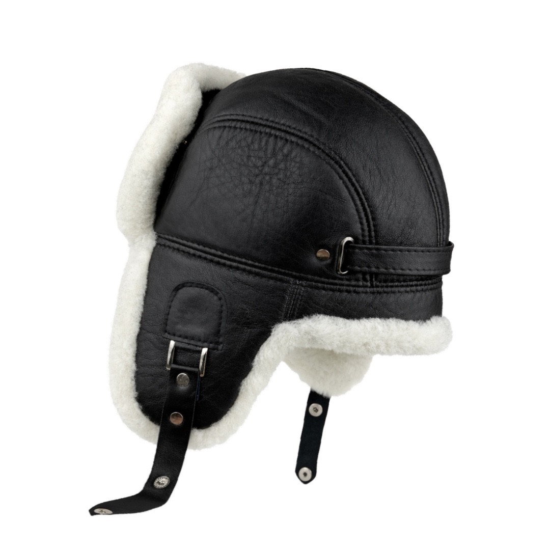 Real Shearling Leather Aviator Hat Handmade Warm Winter Black Trapper Hat