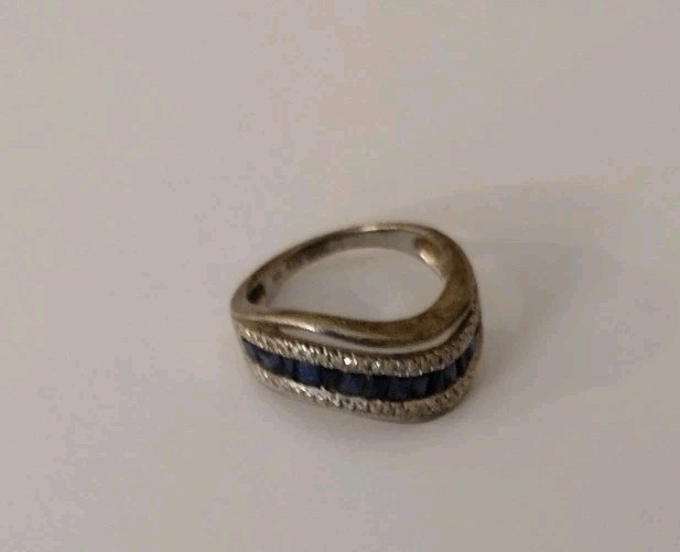 как выглядит Vintage Sterling Silver 925 Blue And Silver Ring Wavy Band Size 7 фото
