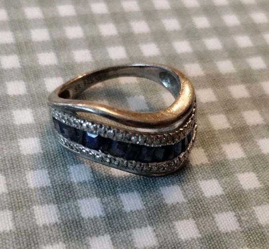 Vintage Sterling Silver 925 Blue And Silver Ring Wavy Band Size 7