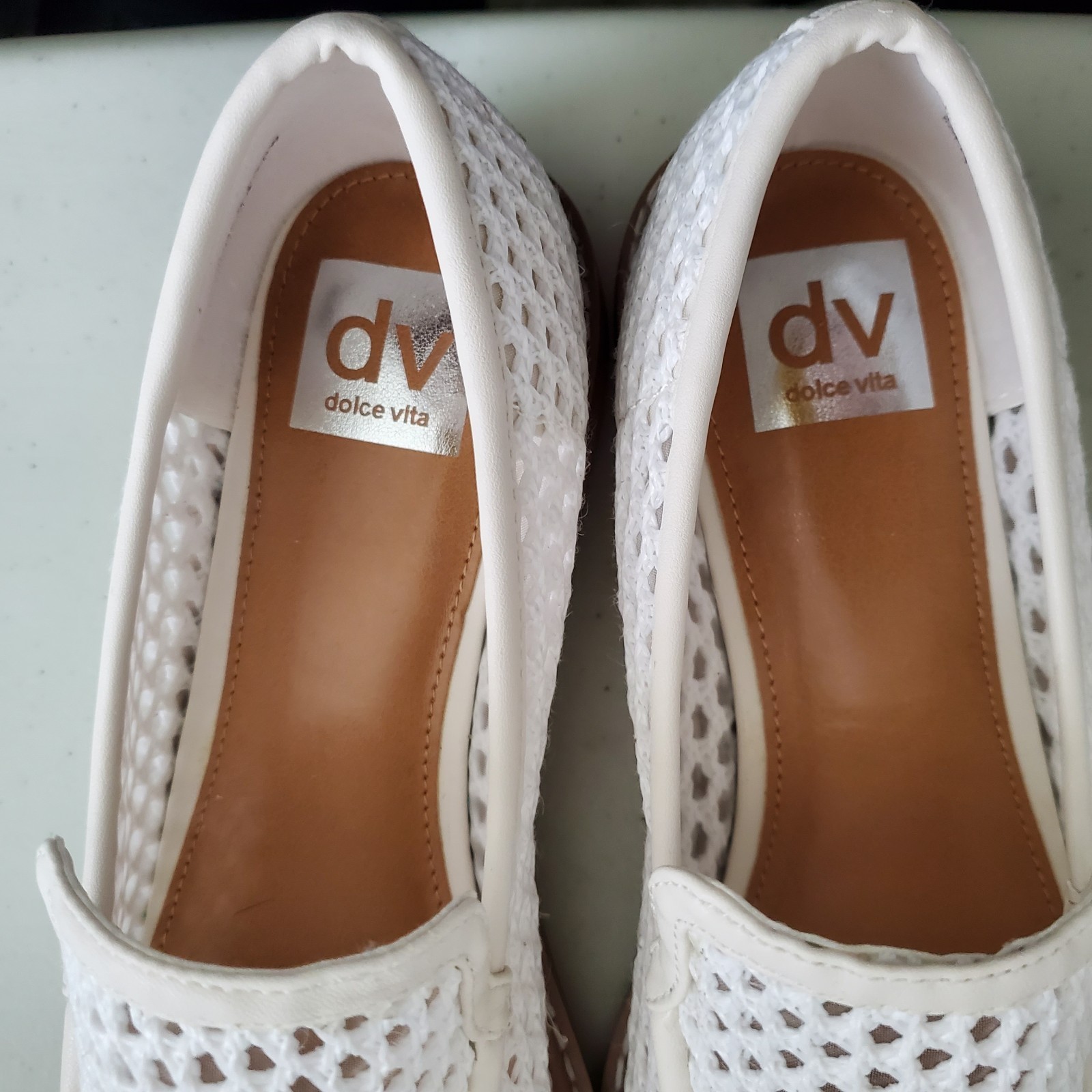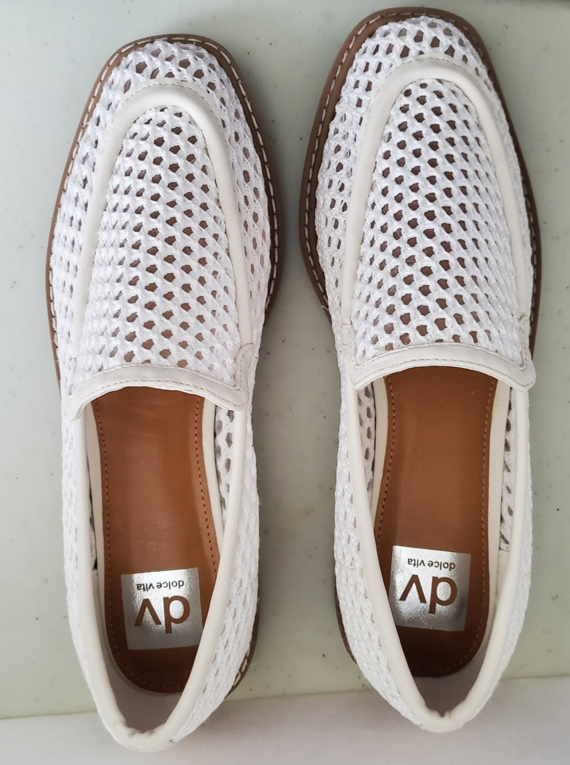 как выглядит DV by Dolce Vita Fran W Womens 8 White Woven Cut Out Details All Over Loafers фото