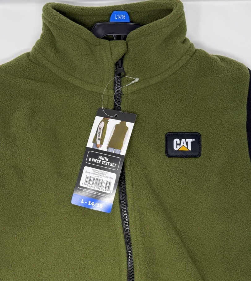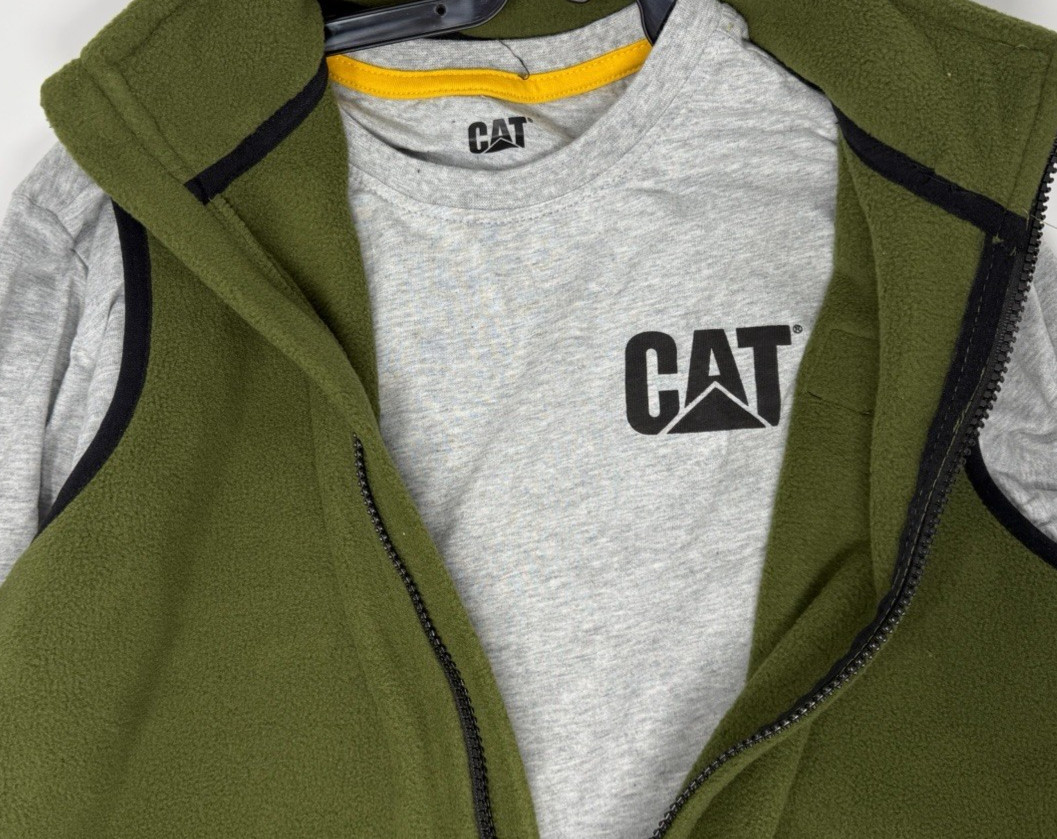 Boys Size L 14/16 CAT 2-Piece Vest Set Long Sleeve Shirt Vest Gray Green