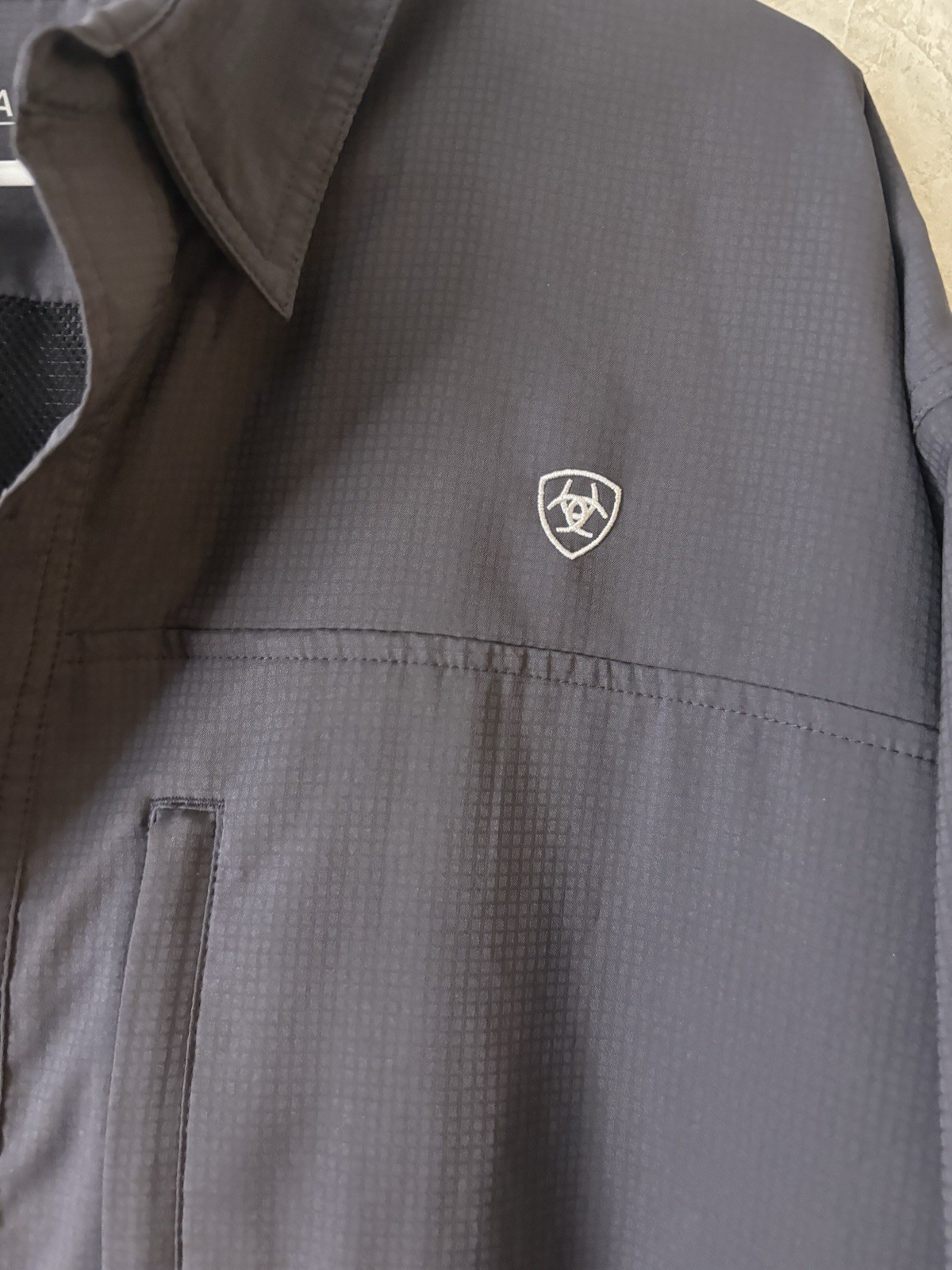 как выглядит Ariat Tek Shirt Mens XLarge Gray Lightweight Vented Short Sleeve Button Up фото