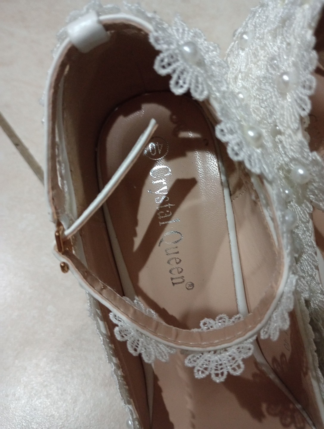 Crystal Queen White Wedding And Party Shoes Lace Wedge Heel size 8.5