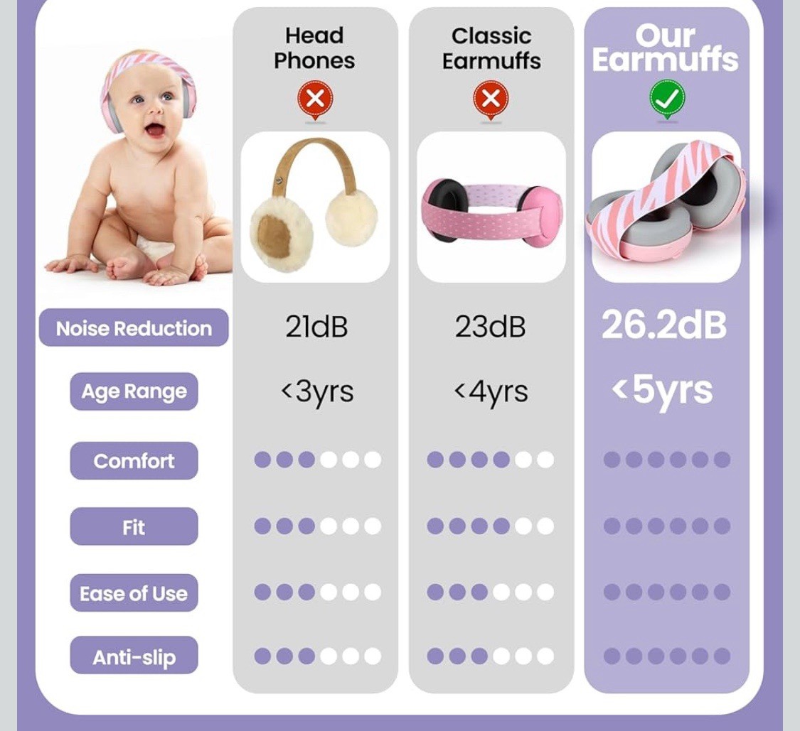 Baby Noise Cancelling Earmuffs Hearing Protection Pink 3 Months 5 Years