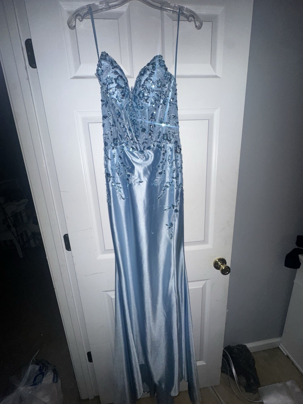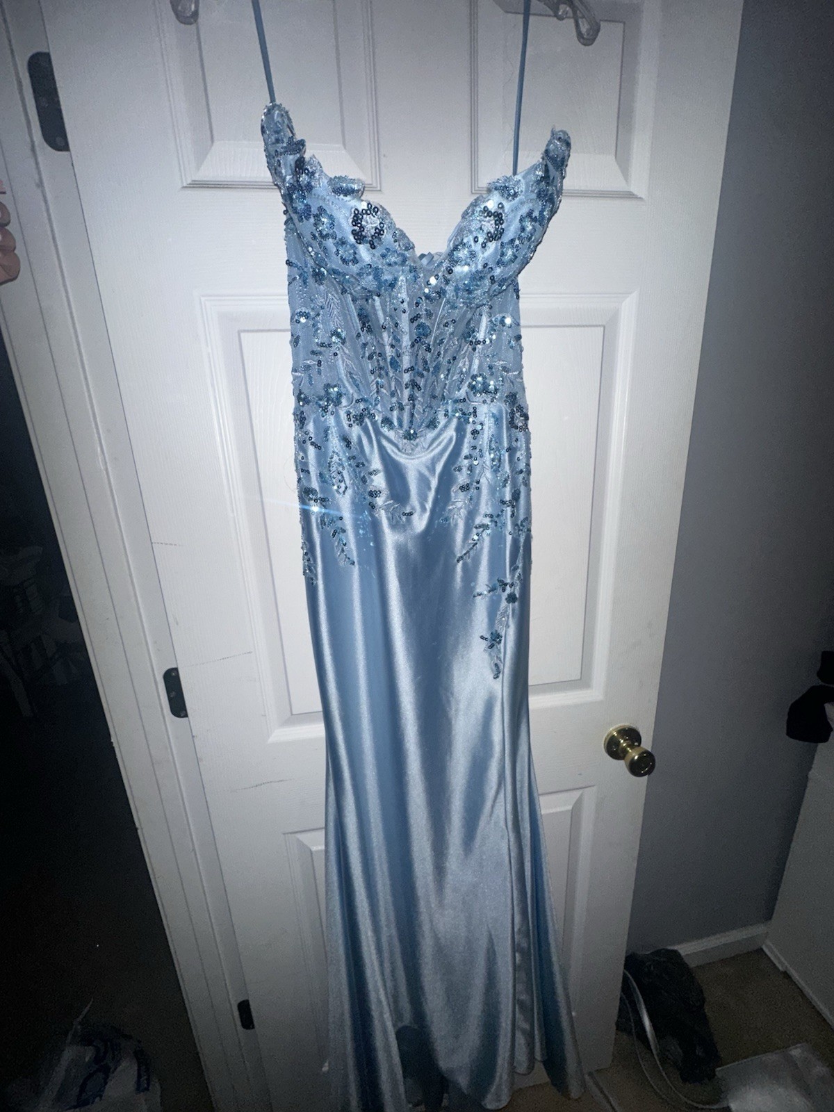 как выглядит Light Blue Prom Dress Size Small Sleeveless Mermaid Style Formal Dress фото