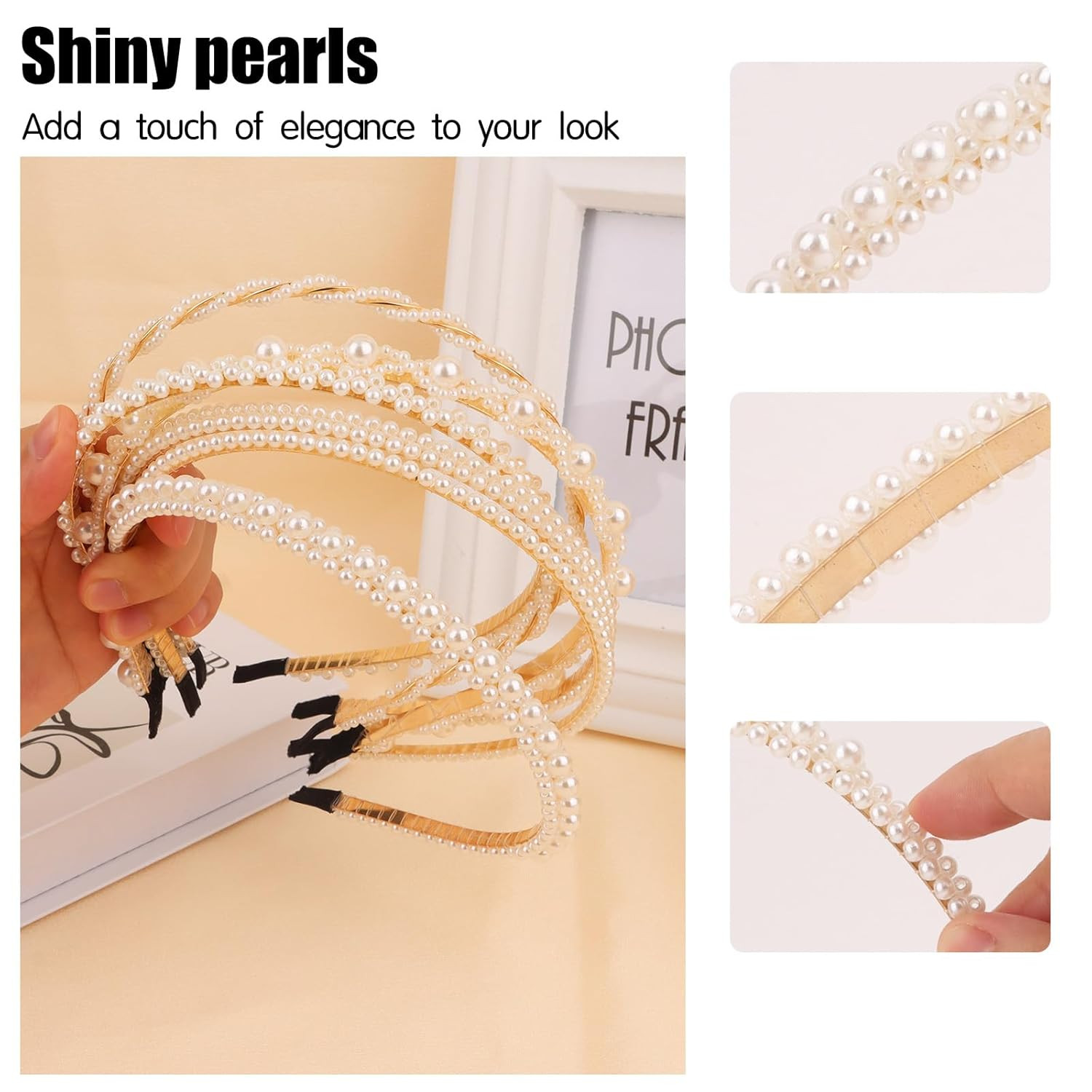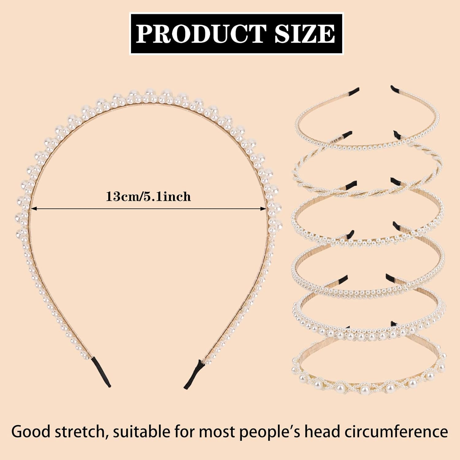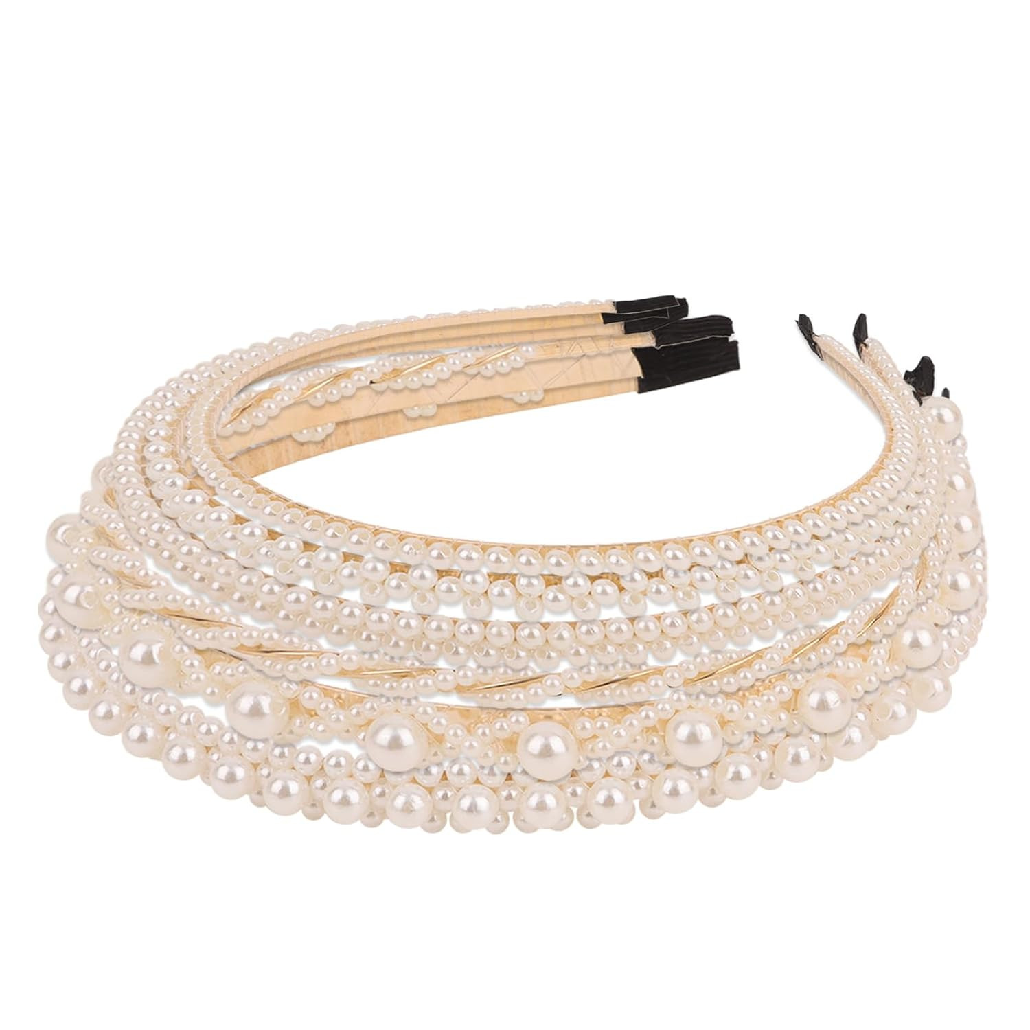 6PCS White Pearl Headbands for Women Jeweled Head Bands Beaded Hairbands Fashion