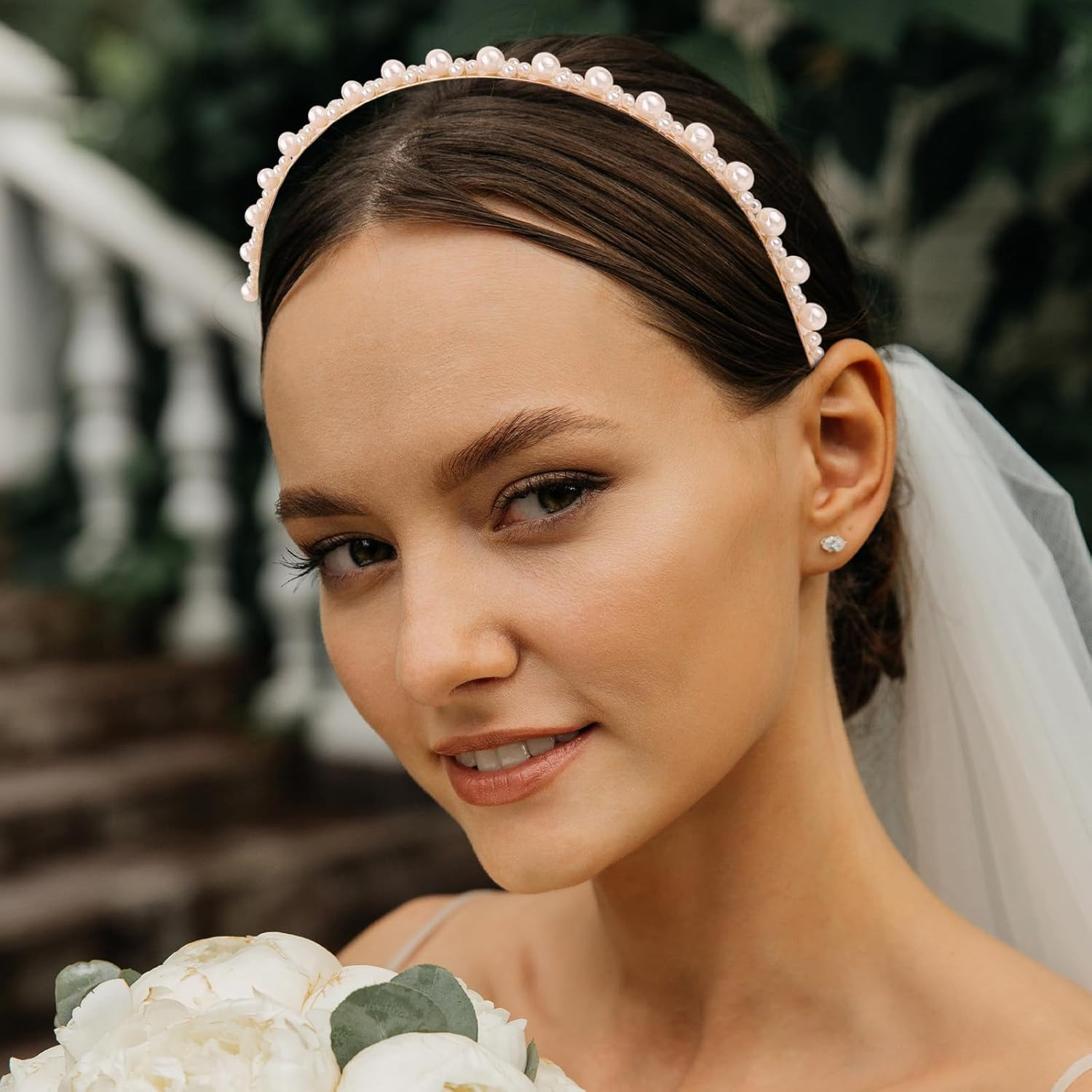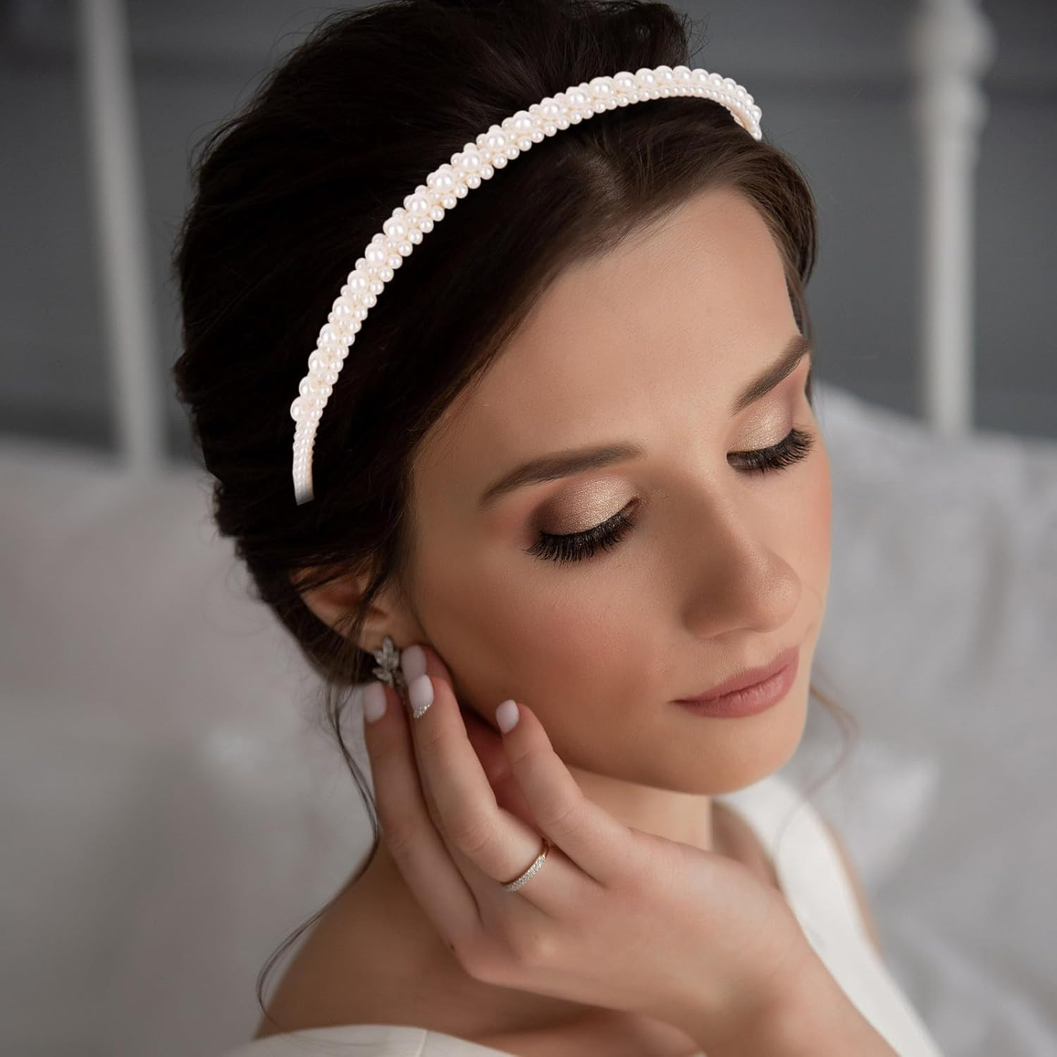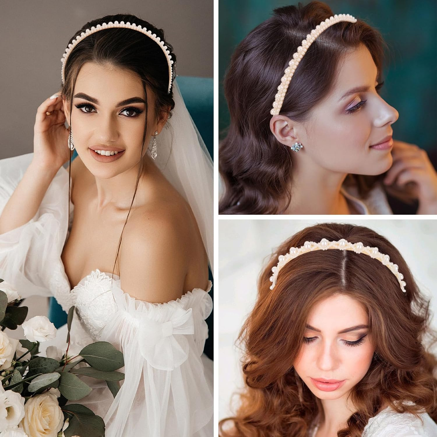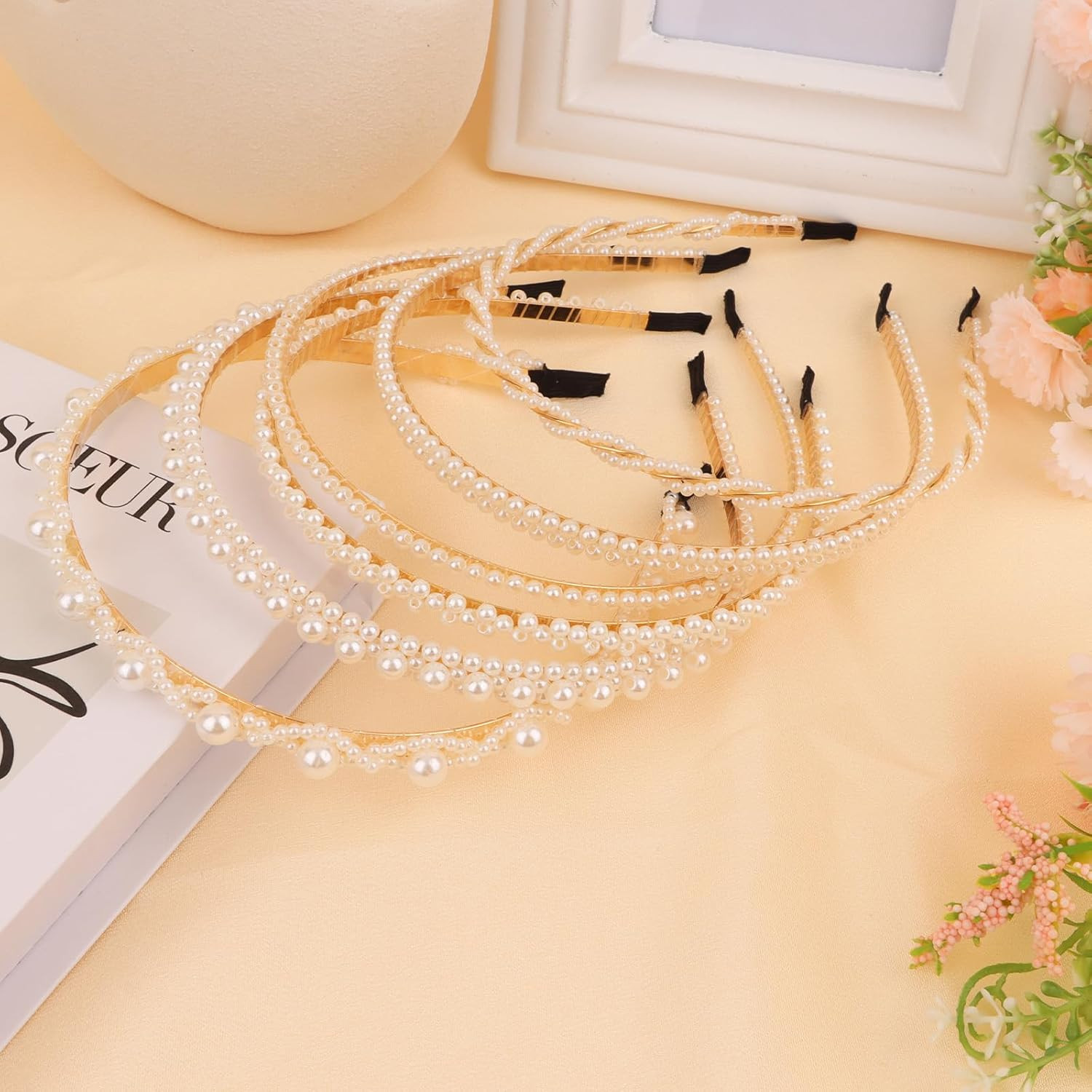 6PCS White Pearl Headbands for Women Jeweled Head Bands Beaded Hairbands Fashion