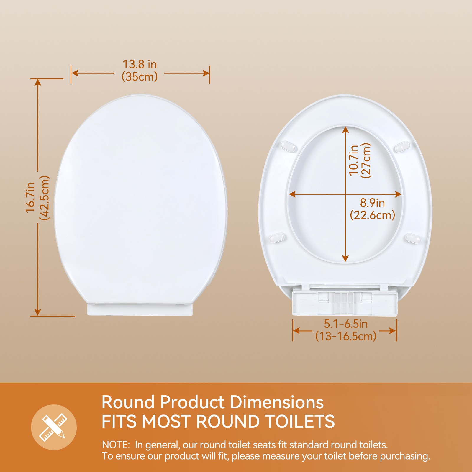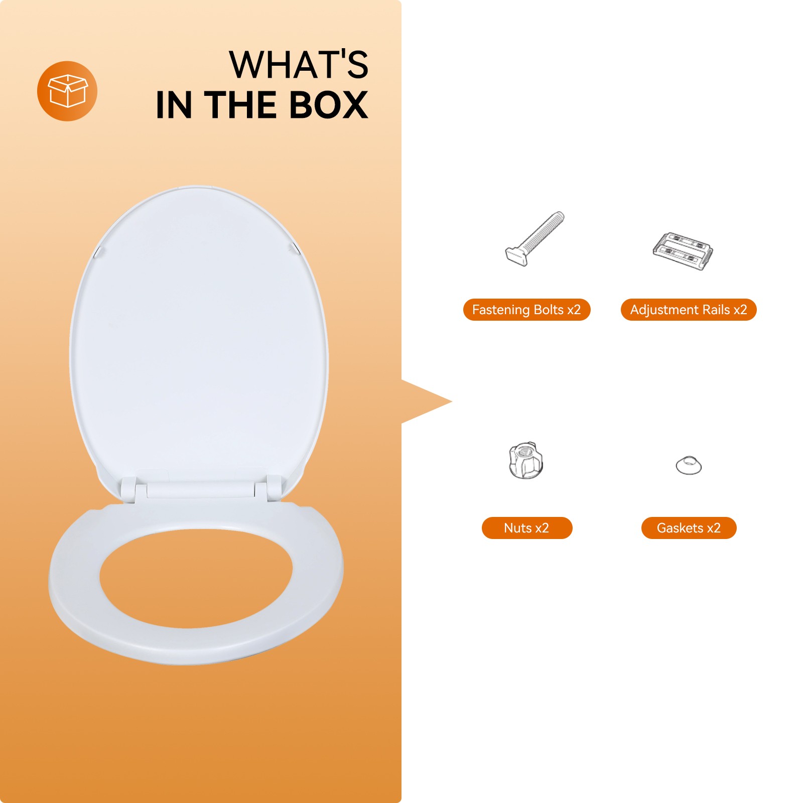 Elongated Toilet Seat with Hinge, Slow Close, Easy Clean Change Hinges, White