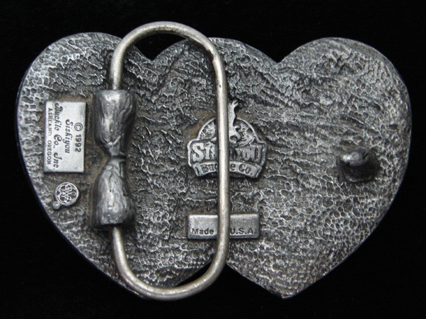 как выглядит QC01120 VINTAGE 1992 FLORAL ORNAMENTAL DOUBLE HEART SHAPED BELT BUCKLE фото