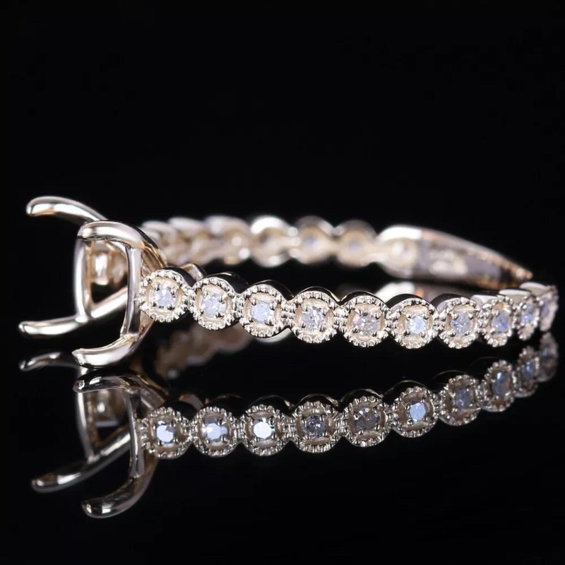 7MM Round Semi Mount Ring 925 Sterling Silver Gold Plated Solitaire Women Ring