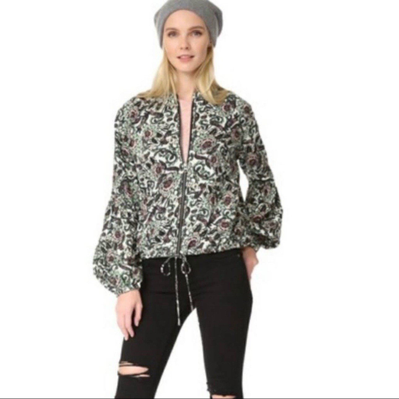 как выглядит Free People Floral Bomber Jacket Balloon Sleeve Zip Up Boho Festival XS фото