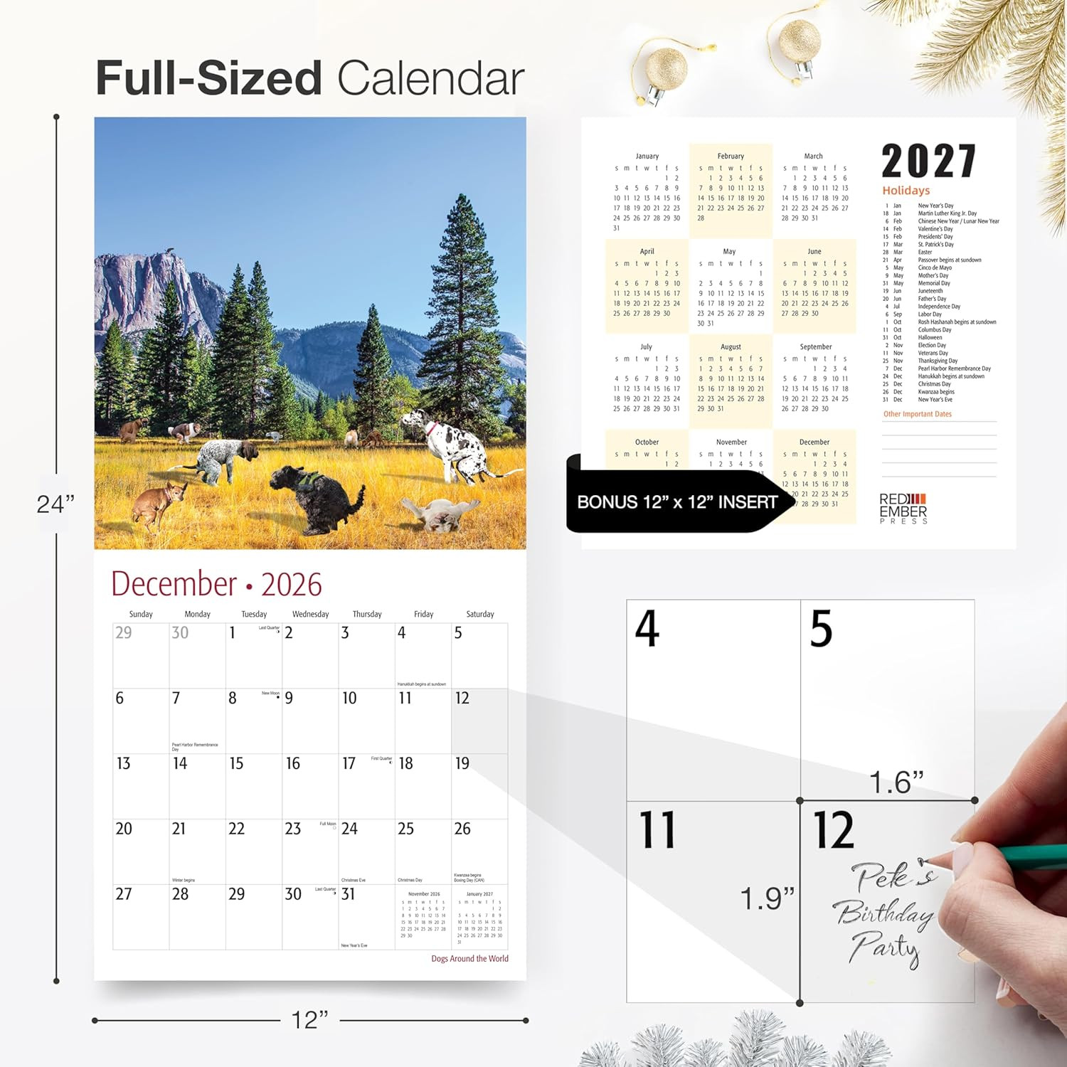 Funny Dogs Around the World 2026 Wall Calendar 12 Month 12 x 24 Open Thick