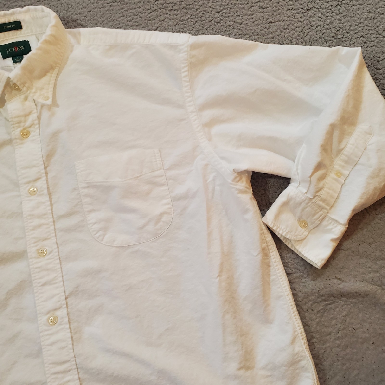 J Crew Oxford Shirt Mens Large White Giant Fit Pocket OCBD Cotton Long Sleeve