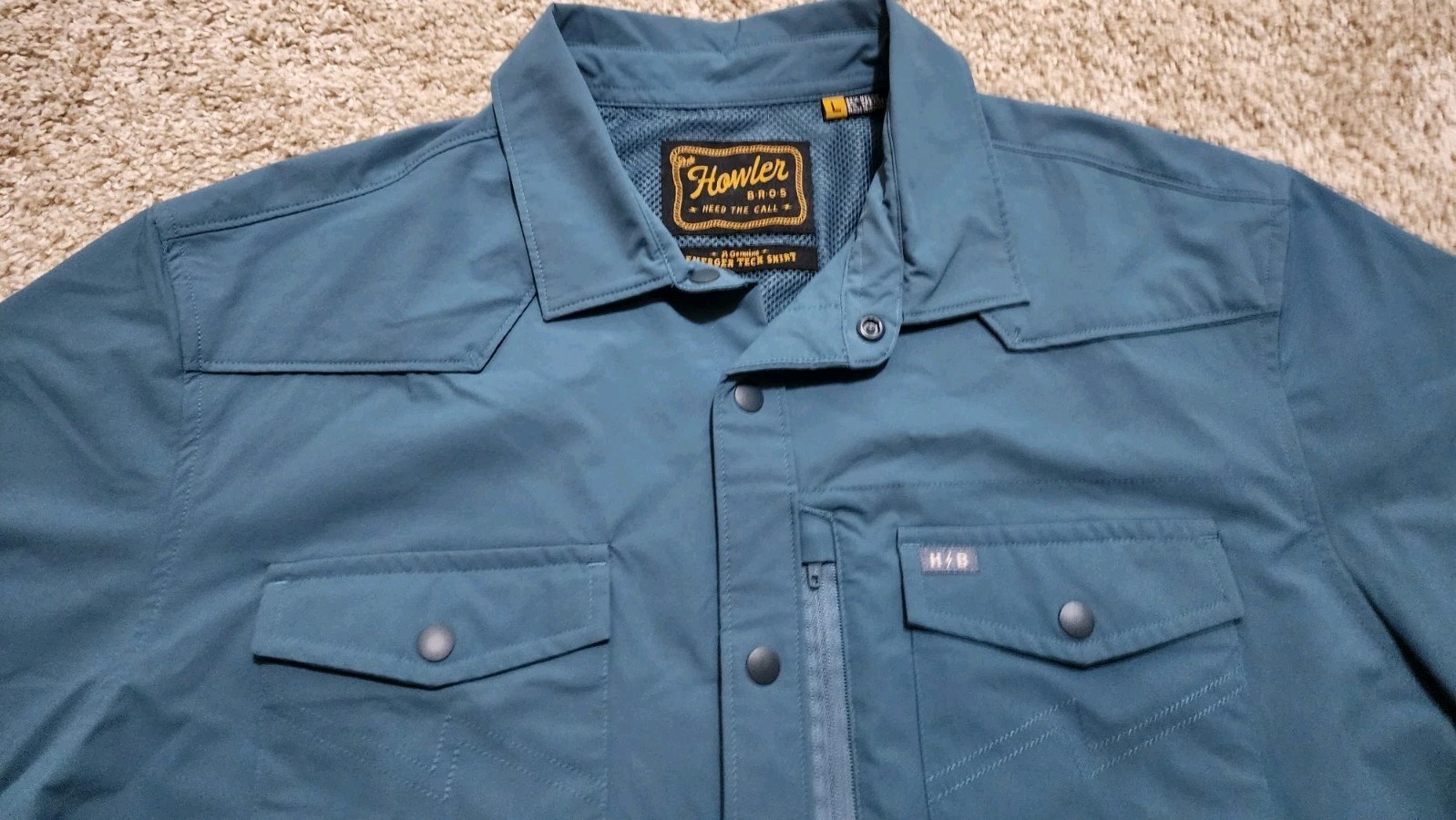 как выглядит Howler Bros Blue Snap Button Short Sleeve Emerger Light Tech Shirt Large NWT фото