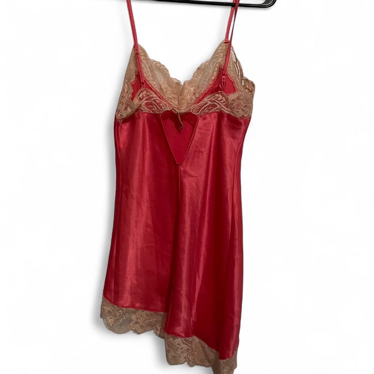 как выглядит VINTAGE Y2K Fredericks of Hollywood coral pink lace cami lingerie dress slip фото
