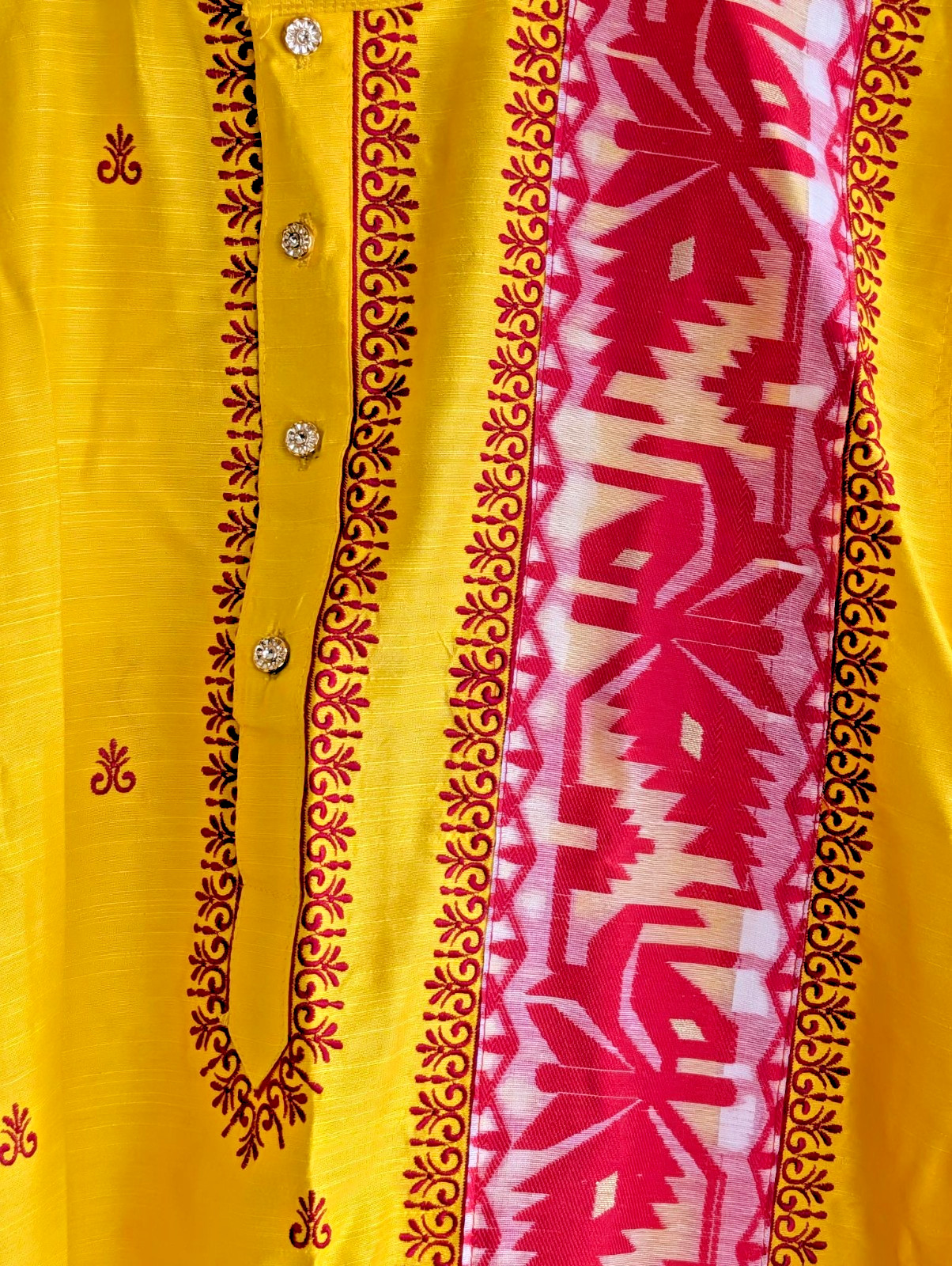 Punjabi Kurta Silk Embroidered Jamdani Work Yellow Wedding Festive Wear Size 42