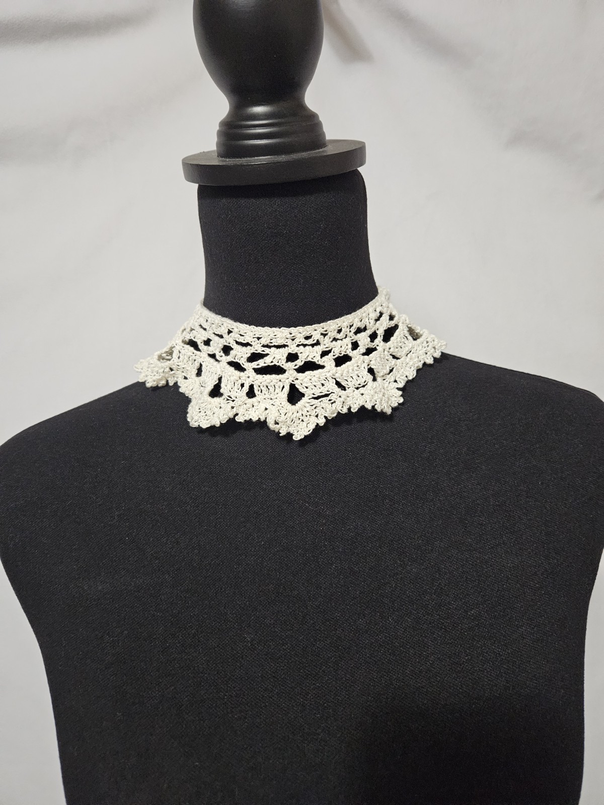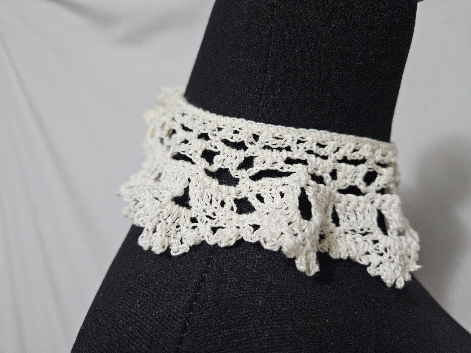 Beautiful True Vintage 1950s Victorian Ivory Crochet Lace High Neck Collar