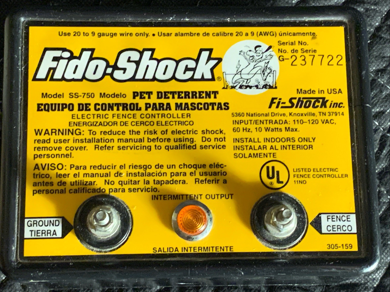 Fido-Shock SS-750 Pet Deterrent Electric Fence Controller Only