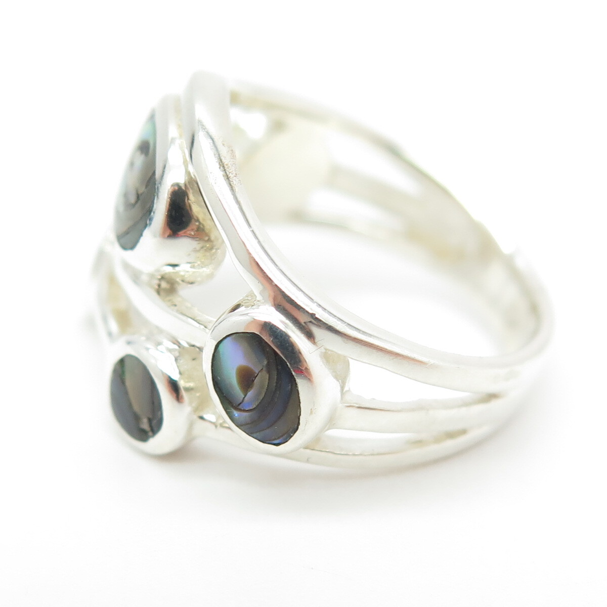 925 Sterling Silver Real Abalone Shell Modernist Ring Size 5.75