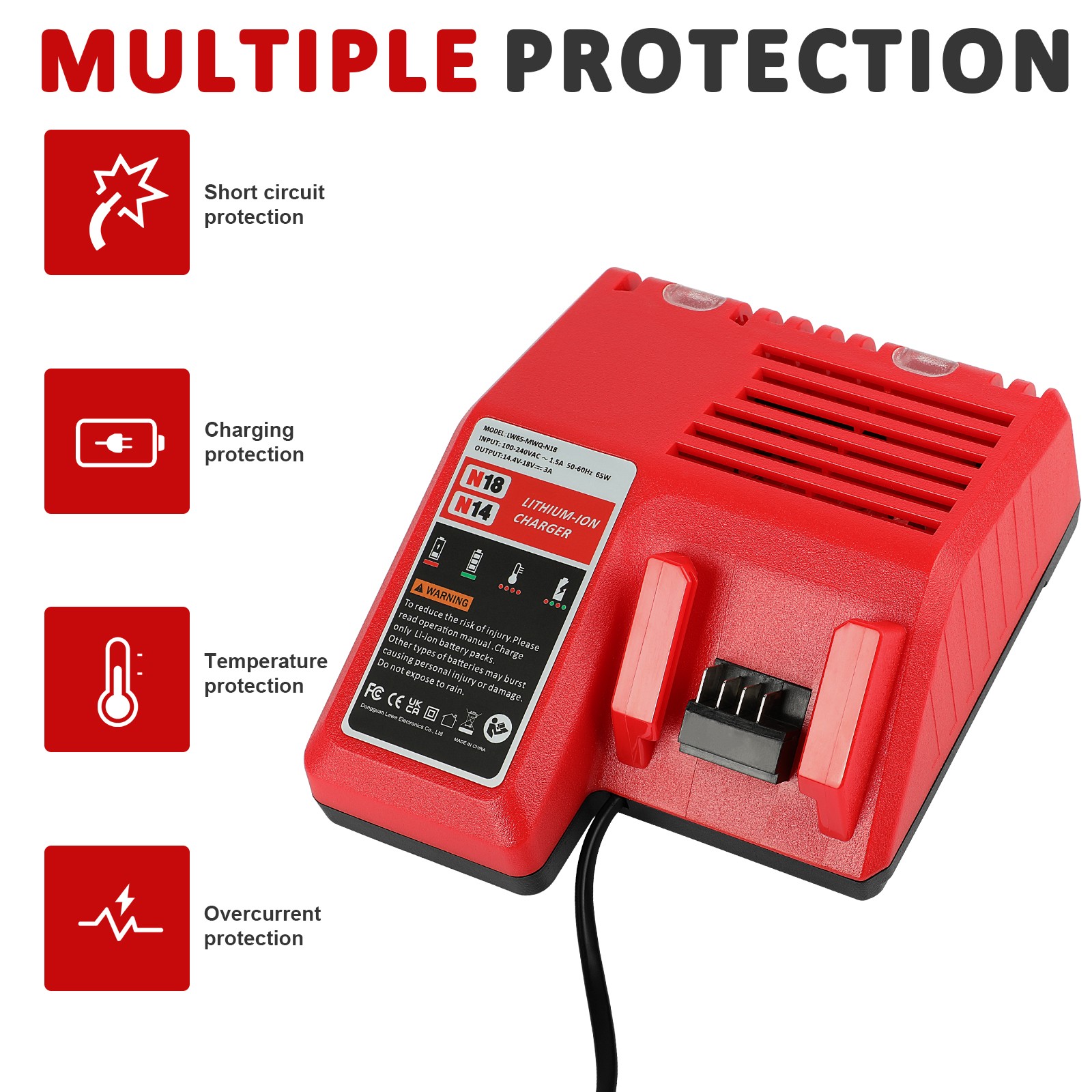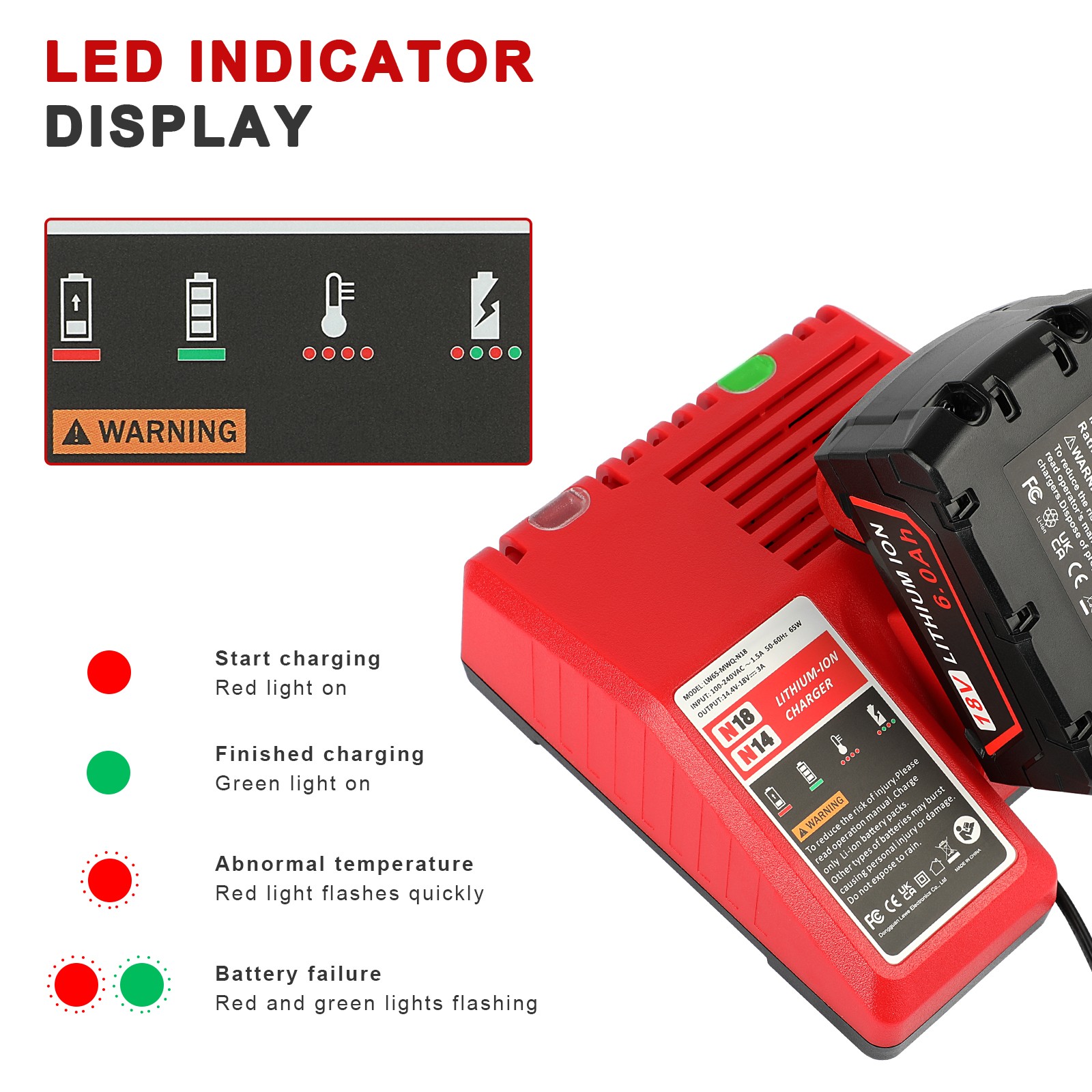 Compatible 18 V for M18 battery: For 48-11-1860,48-11-1840,48-11-1828, 48-11-1850
