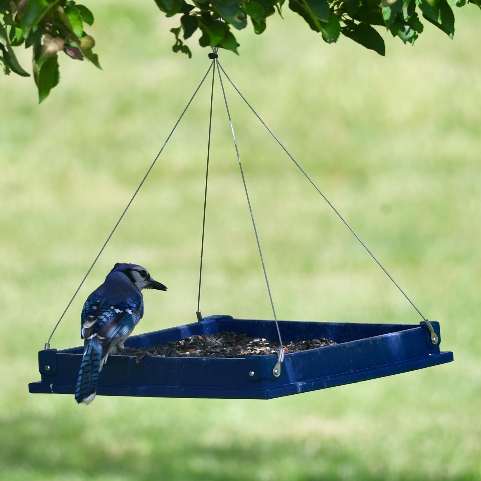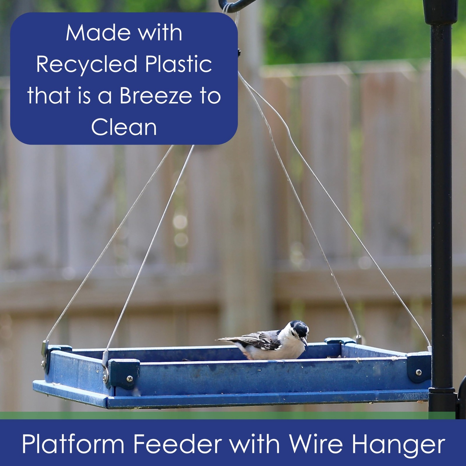 Hanging Bird Feeder Tray - Recycled Plastic Large Blue Hanging Platform Tray ...