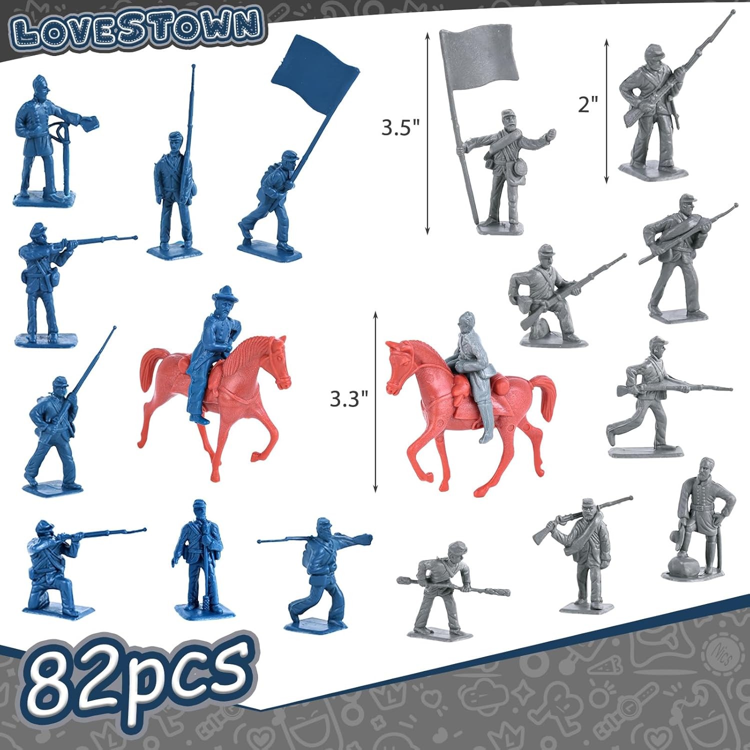 82PCS Civil War Solider Toys, 40 Blue and 40 Gray Uniform Action Figures Plastic