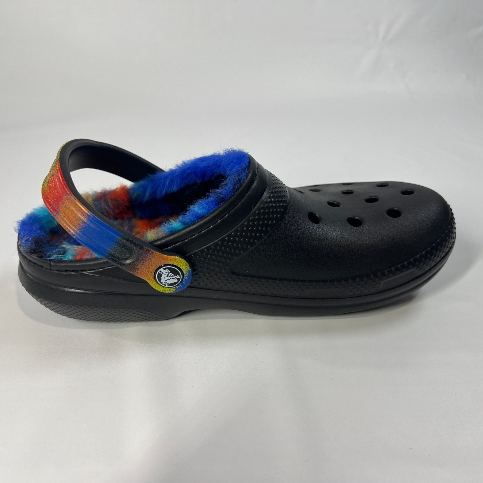 Crocs Classic Lined Spray Dye Clog M6/W8 Women Black Fuzzy Tie-Dye Comfort Shoe